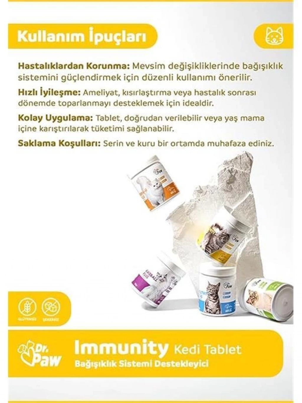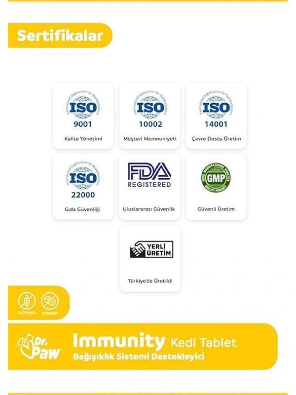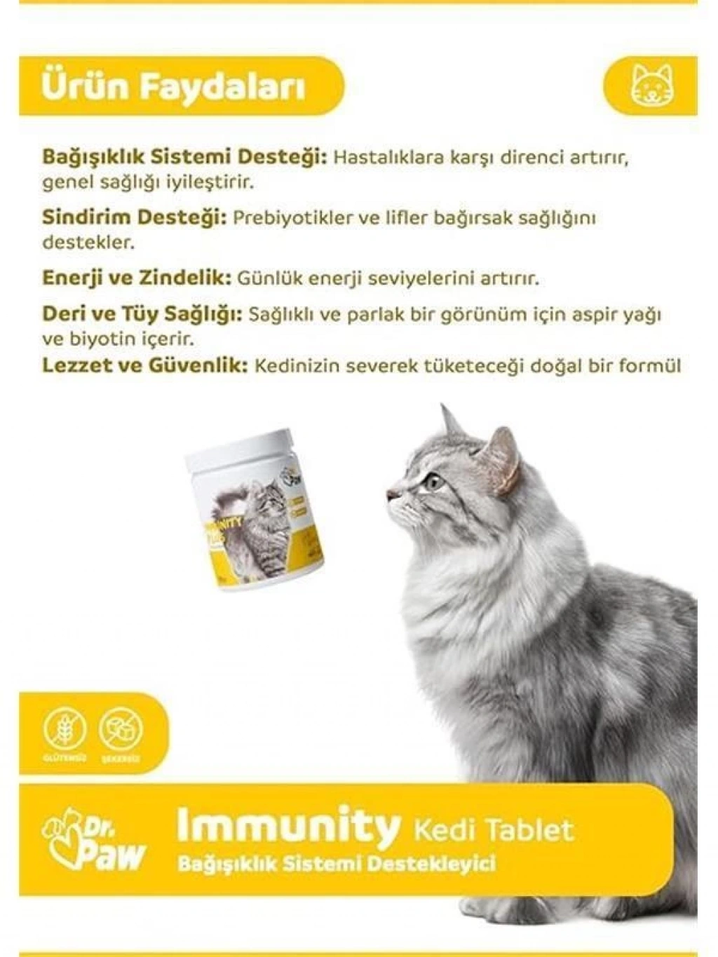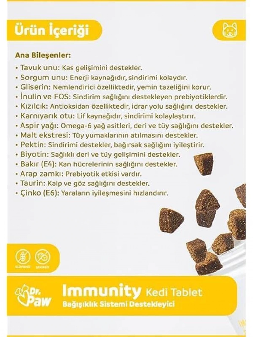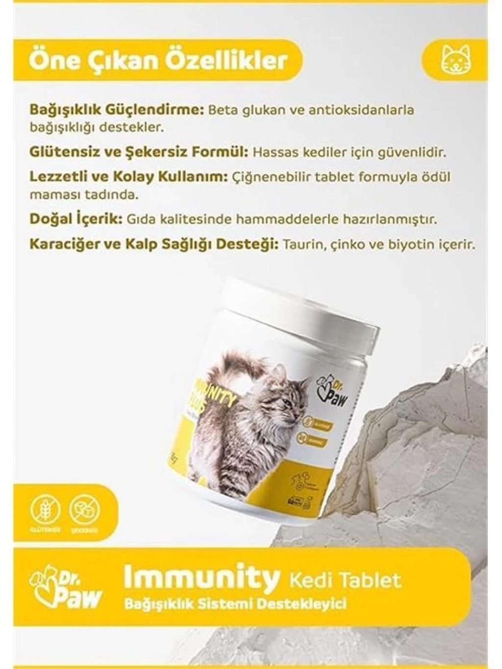 Bu ürün hakkında Veteriner hekimlerin uzmanlığıyla geliştirilen ve gıda kalitesinde (food grade) içeriklerle üretilen Paw Immunity Plus glütensiz ve şekersiz formülü sayesinde kedinizin genel sağlığını desteklemek için ideal bir takviyedir Bağışıklık Desteği Kedinizin bağışıklık sistemini güçlendirerek hastalıklara karşı direncini artırır Doğal İçerikler Gıda kalitesindeki hammaddelerle güvenilir bir destek sunar Sindirim Sistemi Desteği Prebiyotiklerle bağırsak florasını düzenler sindirimi kolaylaştırır Hassas Diyetlere Uygun Glütensiz ve şekersiz formülüyle hassas kediler için uygundur