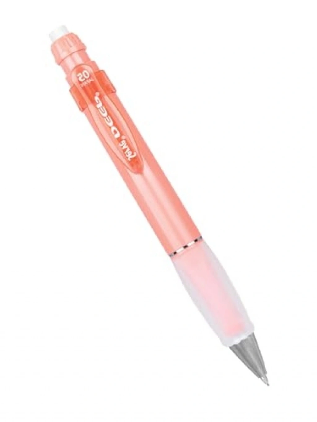 Yüksek kaliteli Japon malzemeleriyle üretilen bu mekanik kurşun kalem, ergonomik grip tasarımı ile rahat ve konforlu kullanım sunar. 0,5mm uç kalınlığı, hassas çizim yapmanıza olanak tanırken, gizlenebilir silgi özelliği ile pratik bir kullanım sağlar. Mercan gövde rengiyle dikkat çekici bir tasarıma sahiptir.