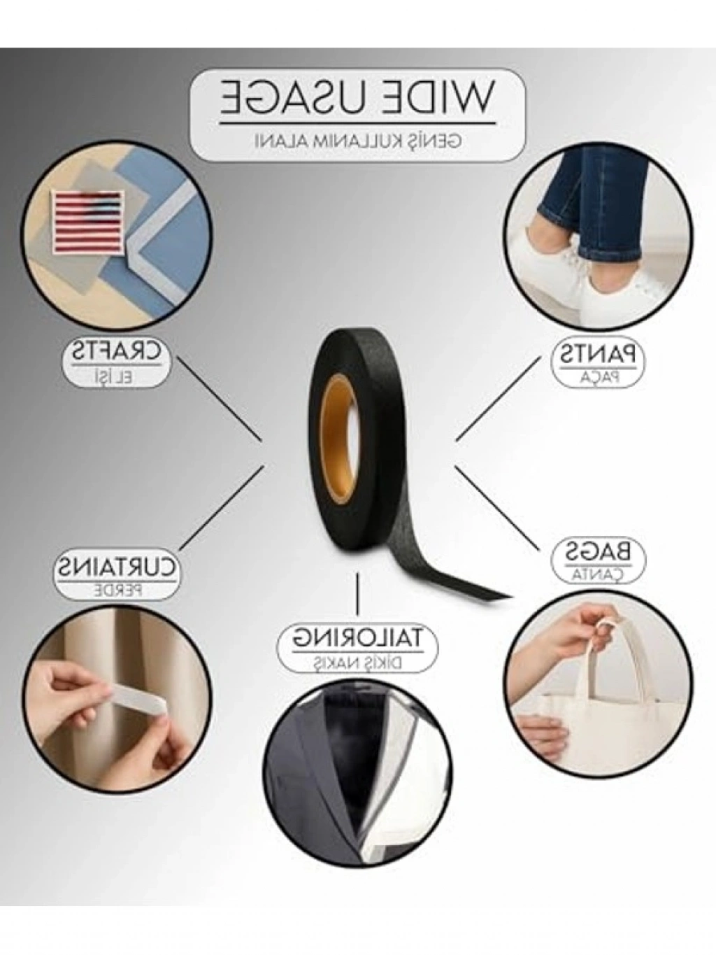 1.5 cm x 100 m boyutundaki çift taraflı yapışkan tela, siyah rengiyle hem görünmez hem de etkili bir yapışma özelliği sunar. İnce dokusu, kumaş üzerinde doğal bir görünüm sağlar. Ütü ile kolayca uygulanabilen bu yapışkan, geniş bir kullanım alanına sahiptir ve hem profesyonel hem de bireysel projelerde mükemmel sonuçlar elde etmenizi sağlar.