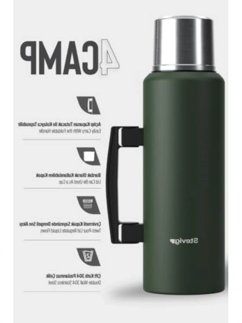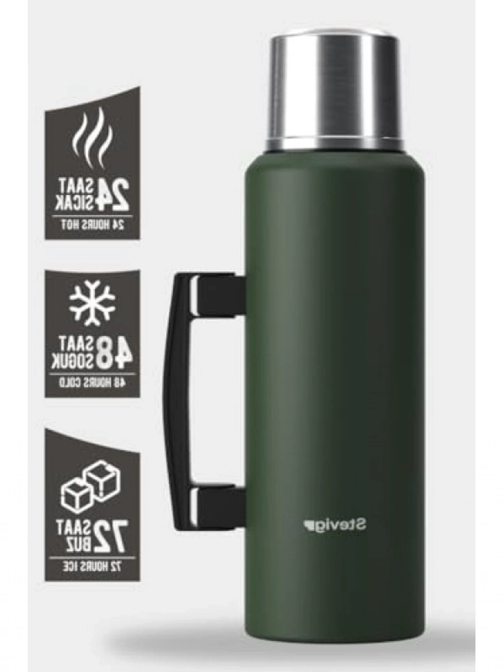 Yüksek kaliteli çelikten üretilmiş bu 1.5 LT kapasiteli termos, mükemmel sıcaklık koruma özelliği ile içeceklerinizi uzun süre sıcak veya soğuk tutma kapasitesine sahiptir. Vakumlu kulplu tasarımı sayesinde taşıması oldukça rahattır. Seyahatlerinizde, pikniklerde ya da günlük kullanımlarınızda güvenilir bir dost olacaktır. Pratik kapağı sayesinde sızdırmazlık özelliğine sahip olup, içeceklerinizi güvenle taşıyabilirsiniz.