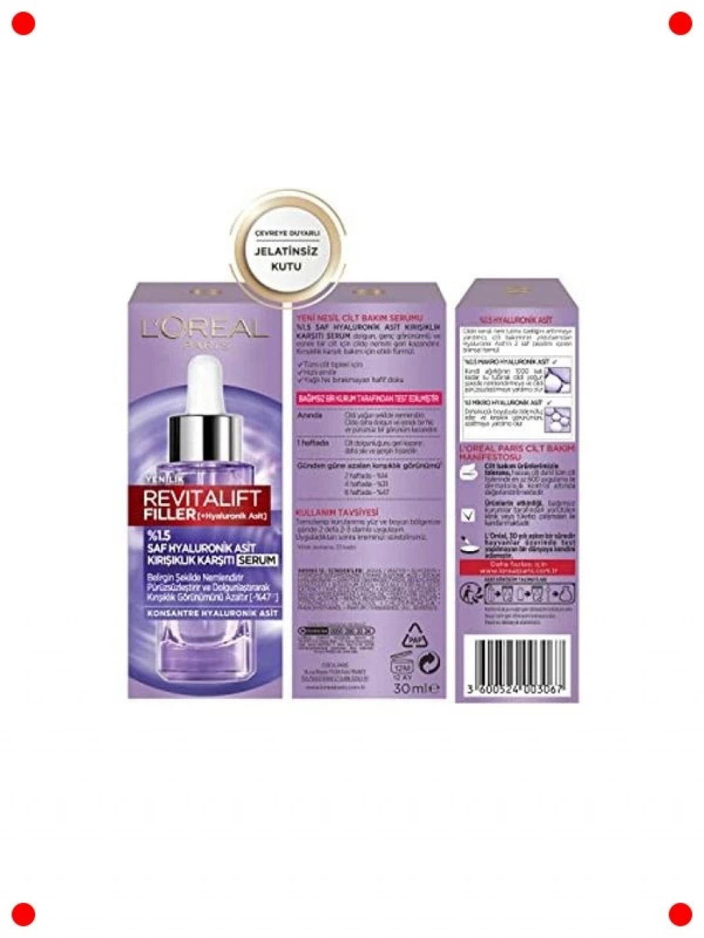 Cildinizin gençlik ışıltısını geri kazandırmak için özel olarak geliştirilmiş bu serum, %1.5 saf hyaluronik asit içeriğiyle güçlü bir kırışıklık karşıtı etki sunar. Cildi yoğun bir şekilde nemlendirir, ince çizgi ve kırışıklıkların görünümünü dolgunlaştırarak pürüzsüzleştirir. Cilt elastikiyetini artırmaya yardımcı olarak daha sıkı ve gergin bir cilt görünümü sağlar. Hafif ve hızlı emilen formülü sayesinde ciltte yapışkan bir his bırakmaz, günlük cilt bakım rutininizin önemli bir parçası olur. Düzenli kullanımda cildinizin daha genç, taze ve canlı görünmesine destek olur.