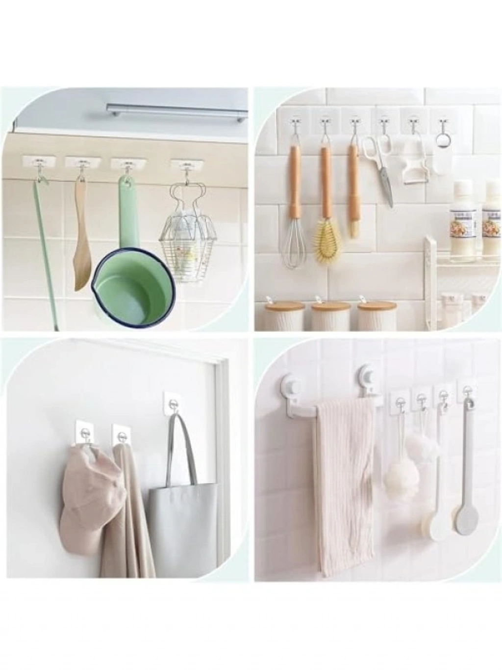 Bu şeffaf duvar askısı seti, güçlü yapışkan teknolojisi ile her türlü yüzeye güvenle yapışır ve iz bırakmadan kolayca çıkarılabilir. Çok amaçlı kullanım imkanı sunan bu askılar, banyo, mutfak ve kapı arkası gibi alanlarda idealdir. Dayanıklı metal kanca yapısı, ağır yükleri taşımanıza olanak tanır. Delme veya çivi gerektirmeden montajı kolaydır ve her pürüzsüz yüzeyde kullanılabilir. Eşyalarınızı düzenli tutmak için pratik bir çözümdür.