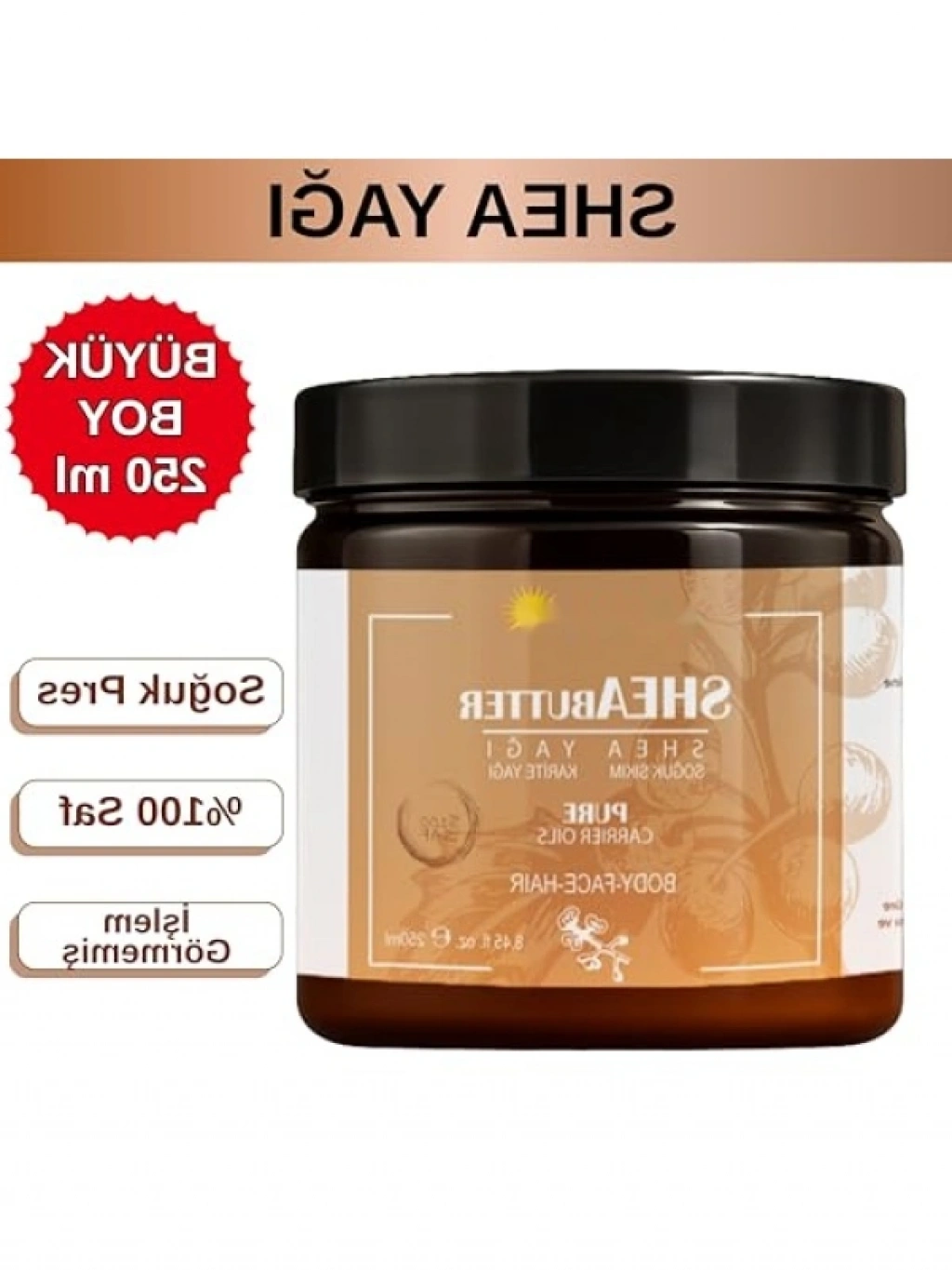 Afrika'daki shea ağacının tohumlarından elde edilen %100 doğal ve ham shea yağı, cildinizi derinlemesine nemlendirir ve onarıcı etkisi ile bilinir. Kuru ve çatlamış ciltler için idealdir. Ayrıca saç ve saç derisi bakımında da kullanılarak, yoğun besleyici etkisi ile saçlarınıza doğal bir parlaklık kazandırır. Tüm cilt tiplerine uygun olarak güvenle kullanılabilir.