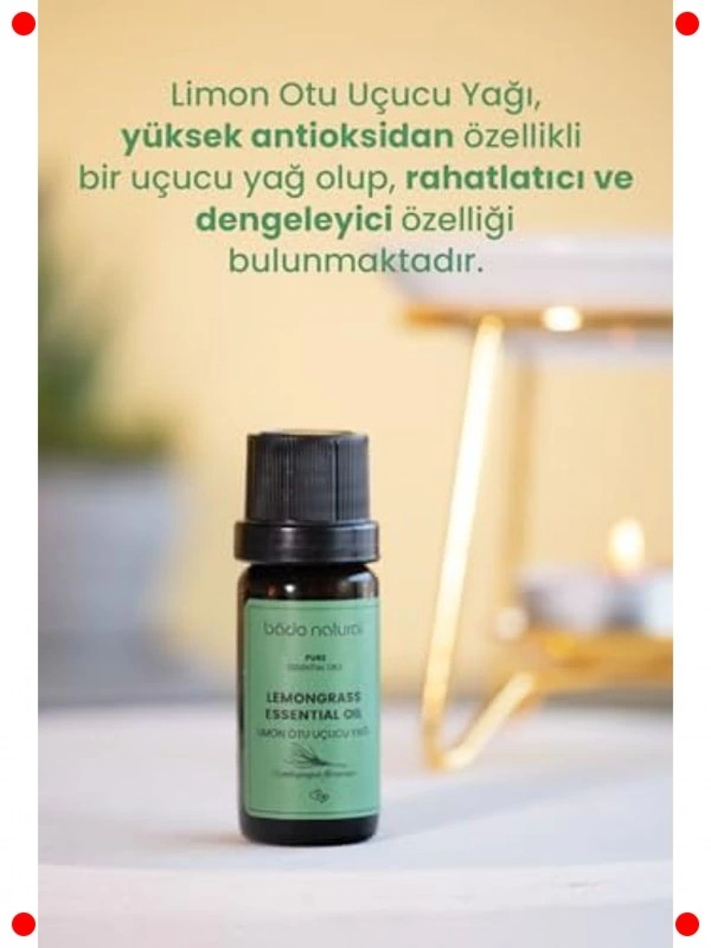 Bu %100 saf limon otu uçucu yağı, ferahlatıcı ve canlandırıcı kokusuyla ruh halinizi yükseltir, zihninizi açar ve odaklanmanıza yardımcı olur. Doğadan gelen bu güçlü öz, aromaterapi uygulamalarında sıklıkla tercih edilir; bir difüzörde kullanıldığında evinize veya çalışma alanınıza enerji dolu bir atmosfer katar. Cilt ve saç bakımında da faydaları bulunan limon otu yağı, cildi arındırmaya, gözenekleri sıkılaştırmaya ve saç derisini canlandırmaya destek olabilir (seyreltilerek kullanılmalıdır). Masaj yağlarına eklenerek kasları rahatlatıcı bir etki sunar. Katkısız ve doğal içeriği sayesinde güvenle kullanabileceğiniz bu yağ, günlük rutininize taze bir soluk getirir.