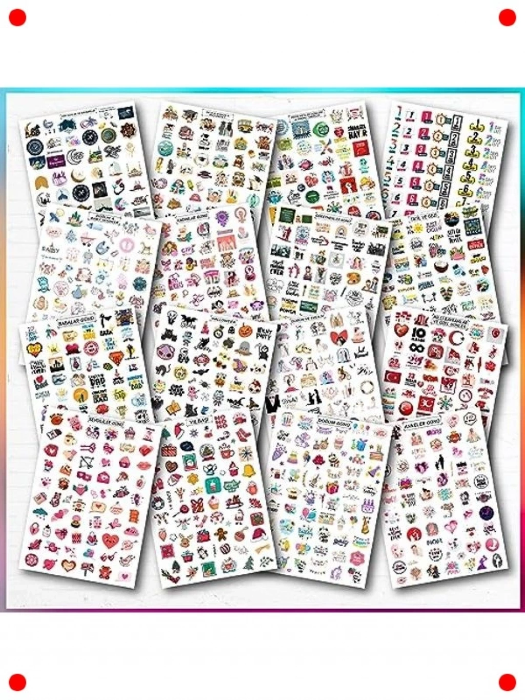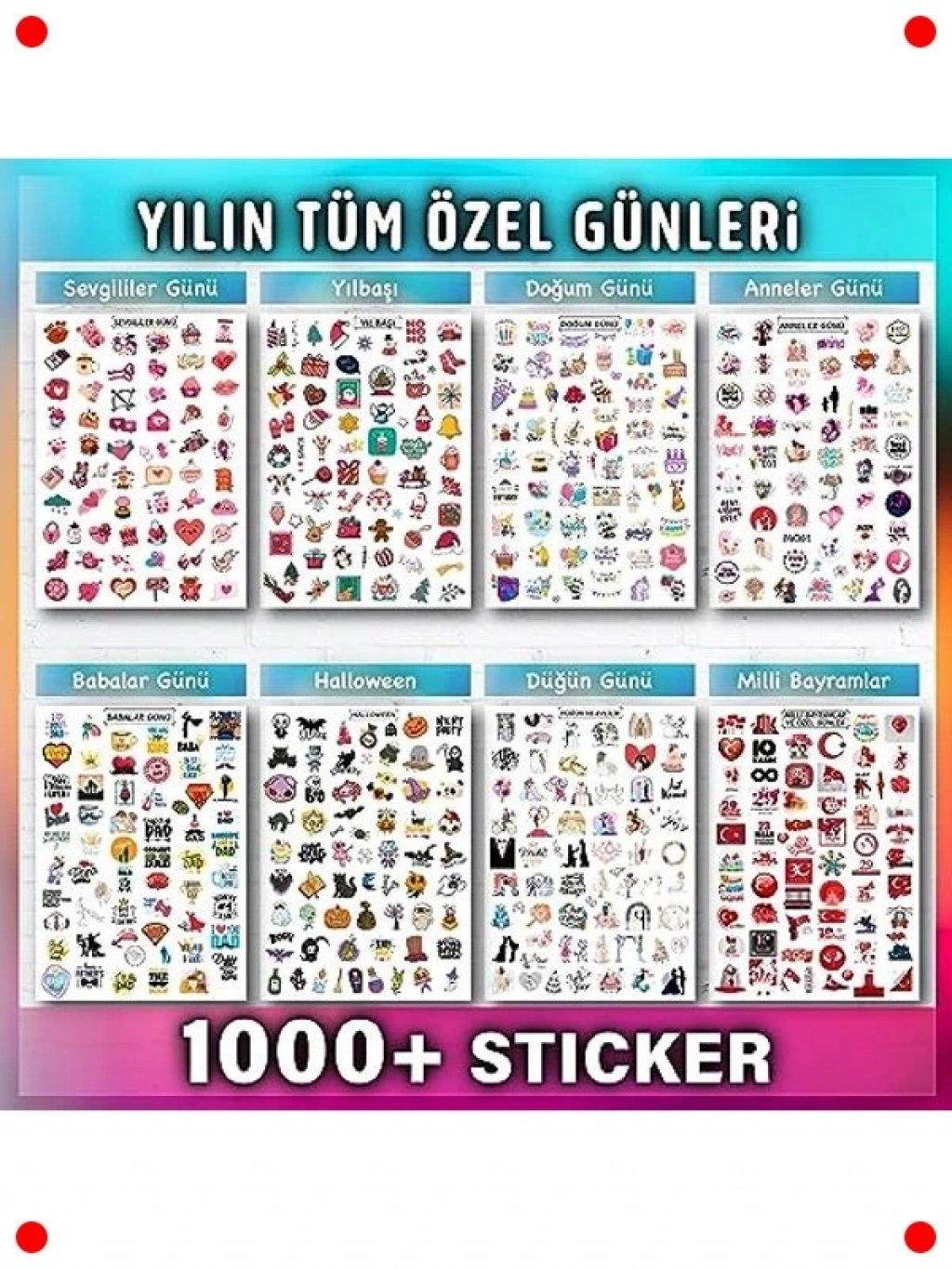 Günlüklerinizi ve ajandalarınızı renklendirmenin en eğlenceli yolu! Bu 1000 adetlik sticker seti, yılın özel günleri konseptiyle tasarlanmış kendinden yapışkanlı etiketler sunar. Toplam 16 sayfadan oluşan bu koleksiyon, defterlerinizi, plannerlarınızı ve diğer eşyalarınızı kişiselleştirmek için idealdir. Hem kız hem erkek çocukların ve yetişkinlerin kullanımına uygun olan bu çıkartmalar, yaratıcılığı teşvik eder ve organize olmayı daha keyifli hale getirir. Hayal gücünüzü serbest bırakın ve eşyalarınıza kişisel bir dokunuş katın.