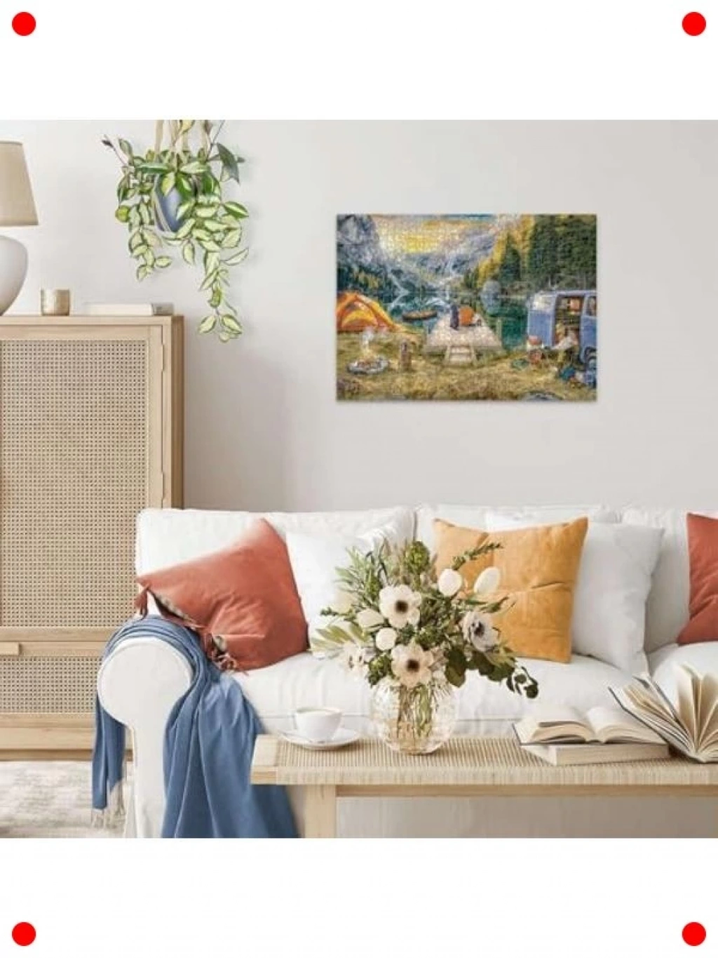 Bu 1000 parçalık yapboz, sakin bir kamp manzarasını gözler önüne seriyor. Doğanın huzur veren atmosferini evinizin konforuna taşıyan bu yapboz, stres atmak ve zihni dinlendirmek için mükemmel bir yoldur. Her bir parça özenle kesilmiş olup, birbiriyle mükemmel uyum sağlar. Canlı renkleri ve detaylı illüstrasyonlarıyla tamamlandığında etkileyici bir sanat eseri ortaya çıkar. Ailenizle birlikte kaliteli zaman geçirmek veya tek başınıza dingin bir hobi edinmek için idealdir. Konsantrasyonu ve problem çözme becerilerini geliştirirken, size tatmin edici bir tamamlanma hissi sunar. Duvara asıldığında şık bir dekoratif obje olur.