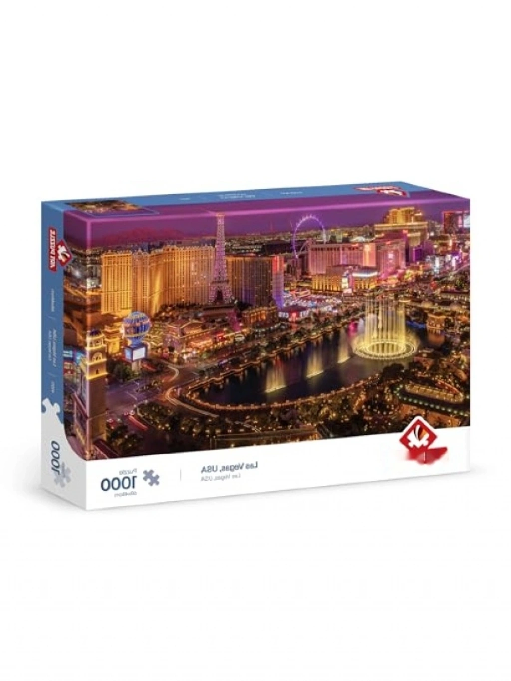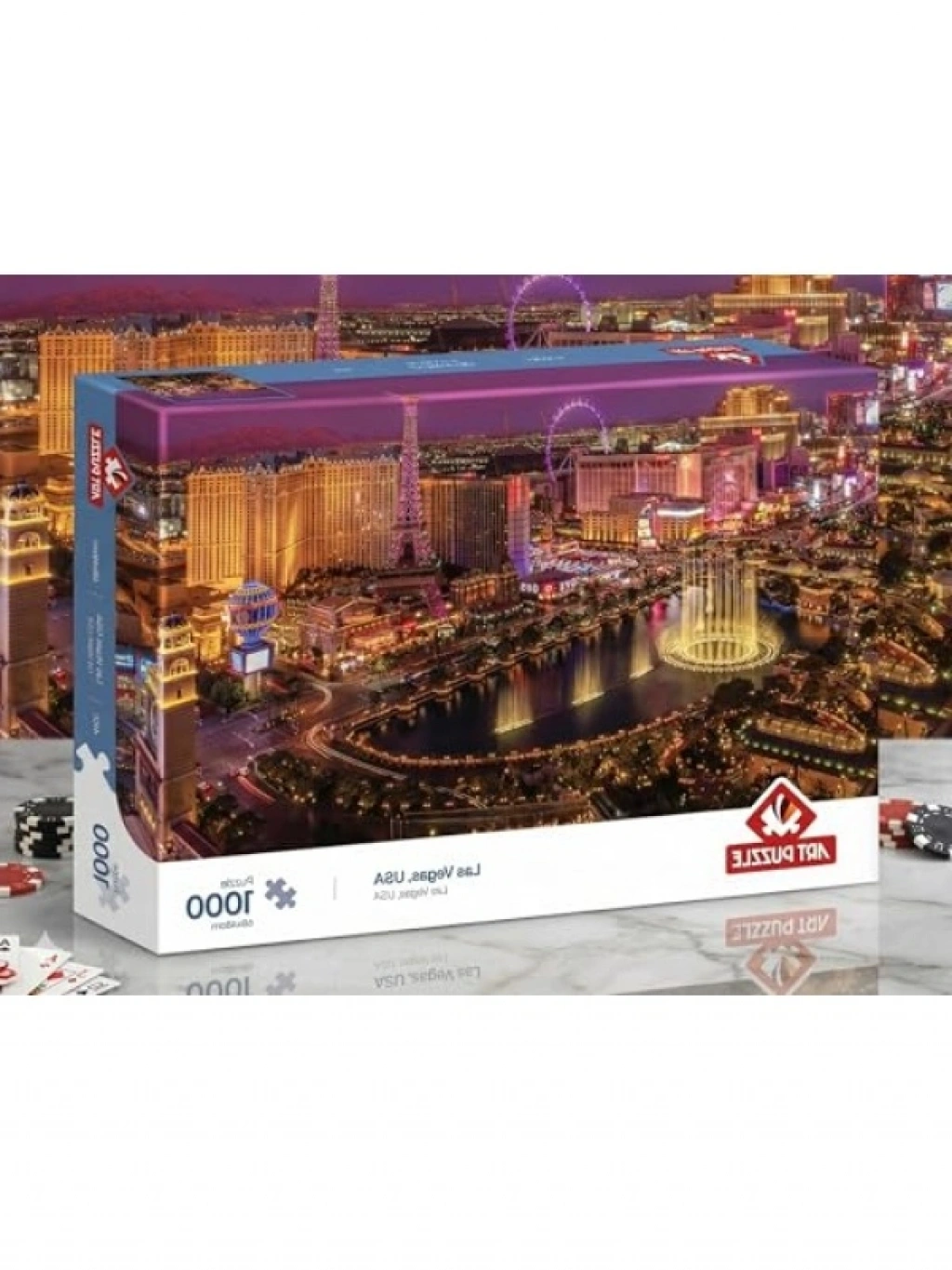 Kayıp parça desteği ile birlikte gelen bu 1000 parçalı puzzle, Las Vegas temalı tasarımı ile yüksek zorluk seviyesi sunar. Monoblok bıçaklarla yapılan hassas kesim sayesinde her parça benzersizdir ve mükemmel uyum sağlar. Yüksek kaliteli kartondan üretilmiş olan puzzle parçaları, uzun ömürlü ve dayanıklıdır. Zihinsel odaklanmayı artıran bu etkinlik, eğlenceli ve tatmin edici bir deneyim sunar.