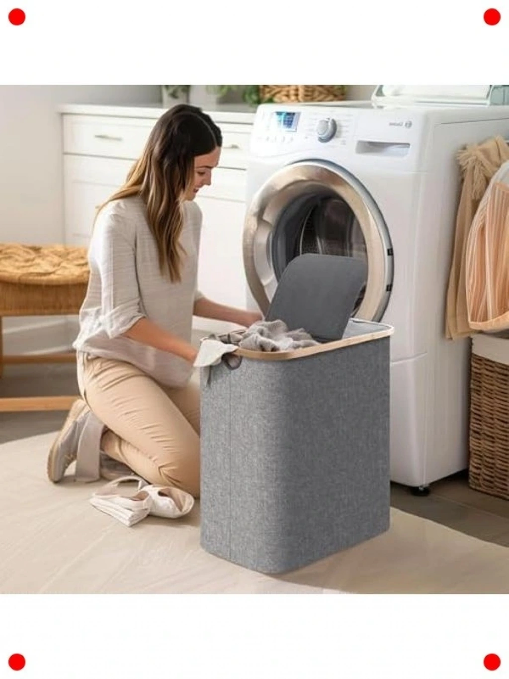 Çamaşırlarınızı düzenlemenin en pratik ve şık yo! 100 litre geniş kapasiteli bu çamaşır sepeti, çift bölmeli tasarımı sayesinde kirli ve tez, renkli ve beyaz gibi çamaşırlarınızı kolayca ayırmanıza olanak tanır. Sepetin kenarları doğal bambu ile güçlendirilş op, hem estetik bir görünüm sunar hem de dayanıklılığını artırır. İç kısmı su geçirmez kumaştan üretilştir, böylece nemli çamaşırların neden olabileceği kokuları ve hasarları önler. Katlanabilir yapısı sayesinde kullanılmadığında yer kaplamaz, banyo veya yk odanızda düzeni sağlar.
