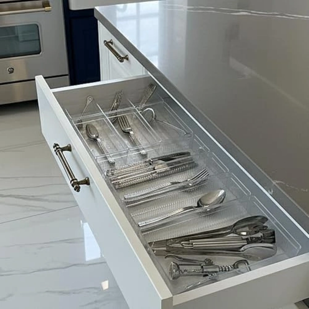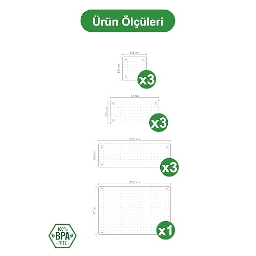Modüler mutfak çekmecelerinizi düzenlemek için tasarlanmış 10'lu set, yüksek kaliteli kristal hammadde kullanılarak üretilmiştir. Bu ürün, mutfak eşyalarınızı, baharatlarınızı ve diğer aksesuarlarınızı düzenli bir şekilde saklama imkanı sunar. Her parça, farklı boyutlarda bölmeler içerir ve böylece ihtiyaçlarınıza göre özelleştirilmiş bir düzenleme yapabilirsiniz. Uzun ömürlü ve şık bir tasarıma sahip olan bu düzenleyici set, mutfaklarınıza modern bir görünüm katacaktır.