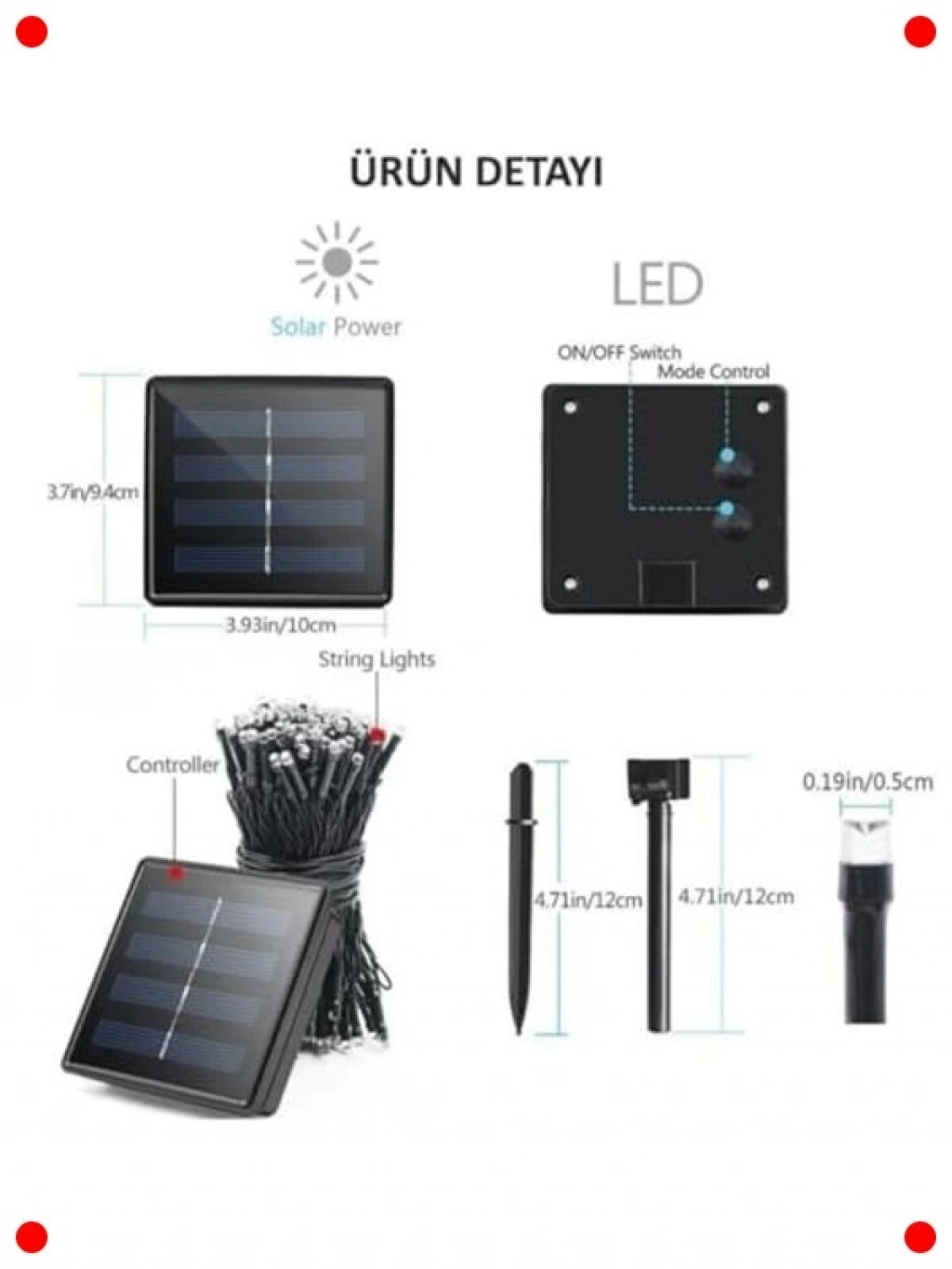 Bahçenizi, balkonunuzu veya havuz kenarınızı büyülü bir atmosfere dönüştürün! Bu 10 metrelik, 100 LED'li solar enerjiyle çalışan aydınlatma zinciri, gün boyunca güneş enerjisiyle şarj olur ve akşam karanlığında otomatik olarak yanar. Elektrik faturası derdi olmadan çevreci ve enerji tasarruflu bir aydınlatma sunar. Dış mekan koşullarına dayanıklı yapısıyla her mevsim güvenle kullanılabilir. Kamp, piknik veya tatil gibi açık hava etkinlikleri için de taşınabilir ve pratik bir aydınlatma çözümüdür. Kolay kurulumu sayesinde anında ambiyans yaratın.