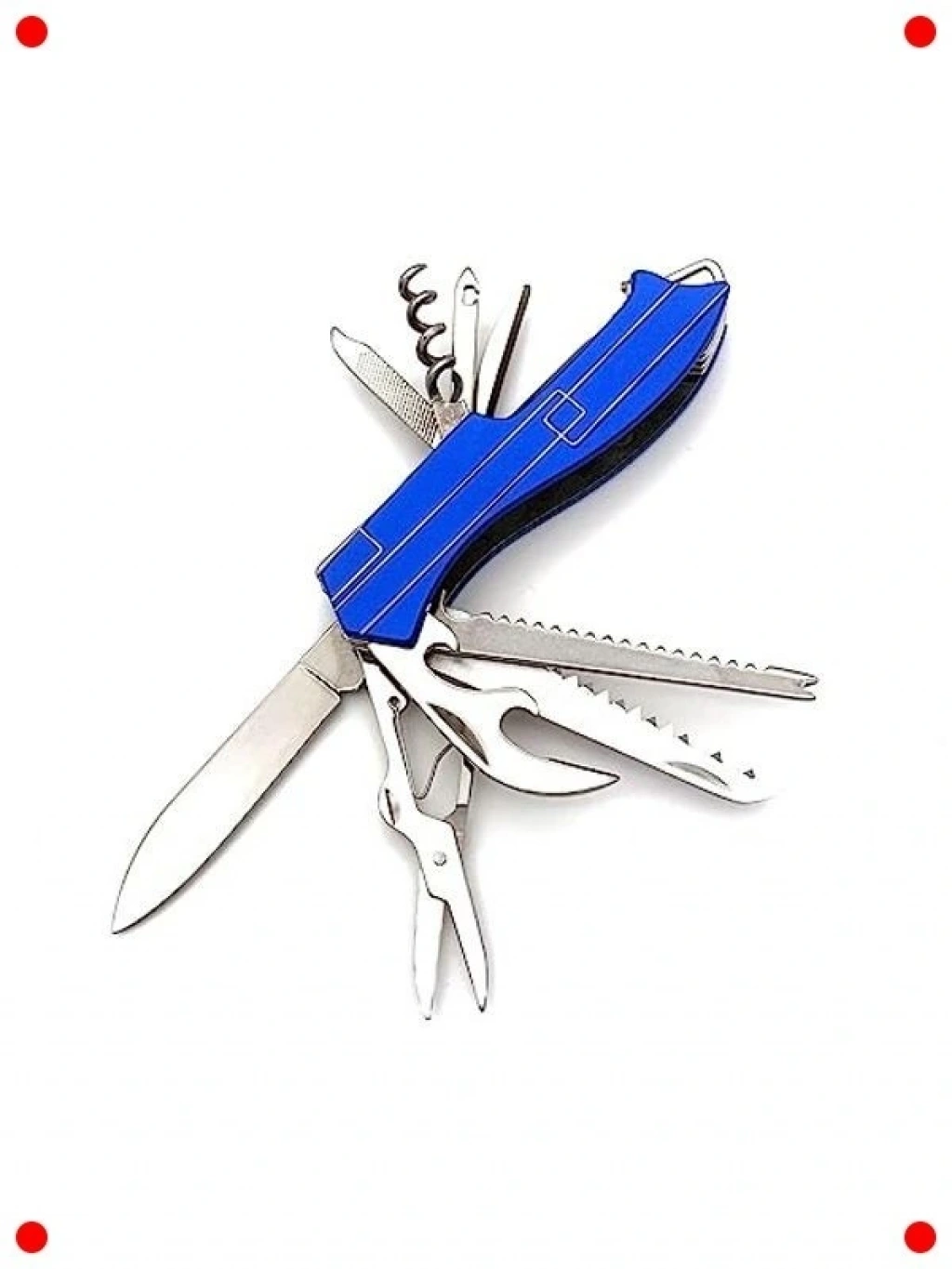 Doğa tutkunları, kampçılar ve günlük kullanım için mükemmel olan bu mavi renkli, 11 fonksiyonlu cep çakısı, çok yönlü bir araç setini tek bir kompakt tasarımda sunar. Paslanmaz çelik bıçak, testere, konserve açacağı, şişe açacağı, tornavidalar ve daha birçok kullanışlı aleti bünyesinde barındırır. Hafif ve dayanıklı yapısıyla her yere kolayca taşınabilir. Parlak mavi rengi sayesinde kamp alanında veya doğada kaybolması durumunda kolayca fark edilebilir. Acil durumlar, küçük onarımlar veya günlük pratik ihtiyaçlar için her zaman yanınızda bulundurabileceğiniz güvenilir bir yardımcıdır.