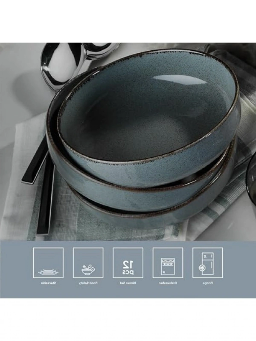 Bu 12 parçadan oluşan yemek takımı, 4 kişilik servis yapabilme kapasitesine sahiptir. Takım, dört adet 24 cm servis tabağı, dört adet 20 cm çukur tabak ve dört adet 15 cm kase içermektedir. Bulaşık makinesinde yıkanabilir özellikleri sayesinde temizlik açısından da pratiklik sunar. Modern mavi rengi ile sofralarınıza şıklık katacak, misafirlerinize hoş bir sunum yapmanızı sağlayacaktır.