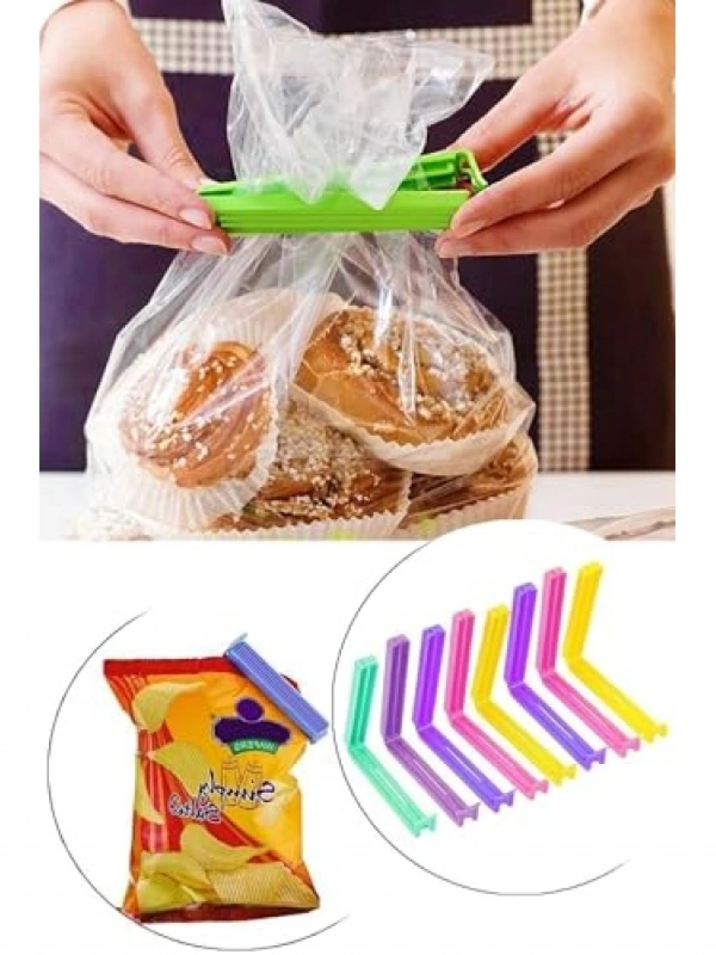 Yiyeceklerinizi taze tutmak için ideal olan bu poşet klipsleri, 12 adetlik set halinde sunulmaktadır. Hava almasını önleyerek cips, atıştırmalık gibi yiyeceklerinizi korur. Çok amaçlı kullanım imkanı ile tahıl, pirinç ve ekmek paketlerini de güvenle kapatabilirsiniz. 10 cm uzunluğu ile pratik bir kullanım sağlar. Kaliteli plastik malzeme ile üretilmiştir.