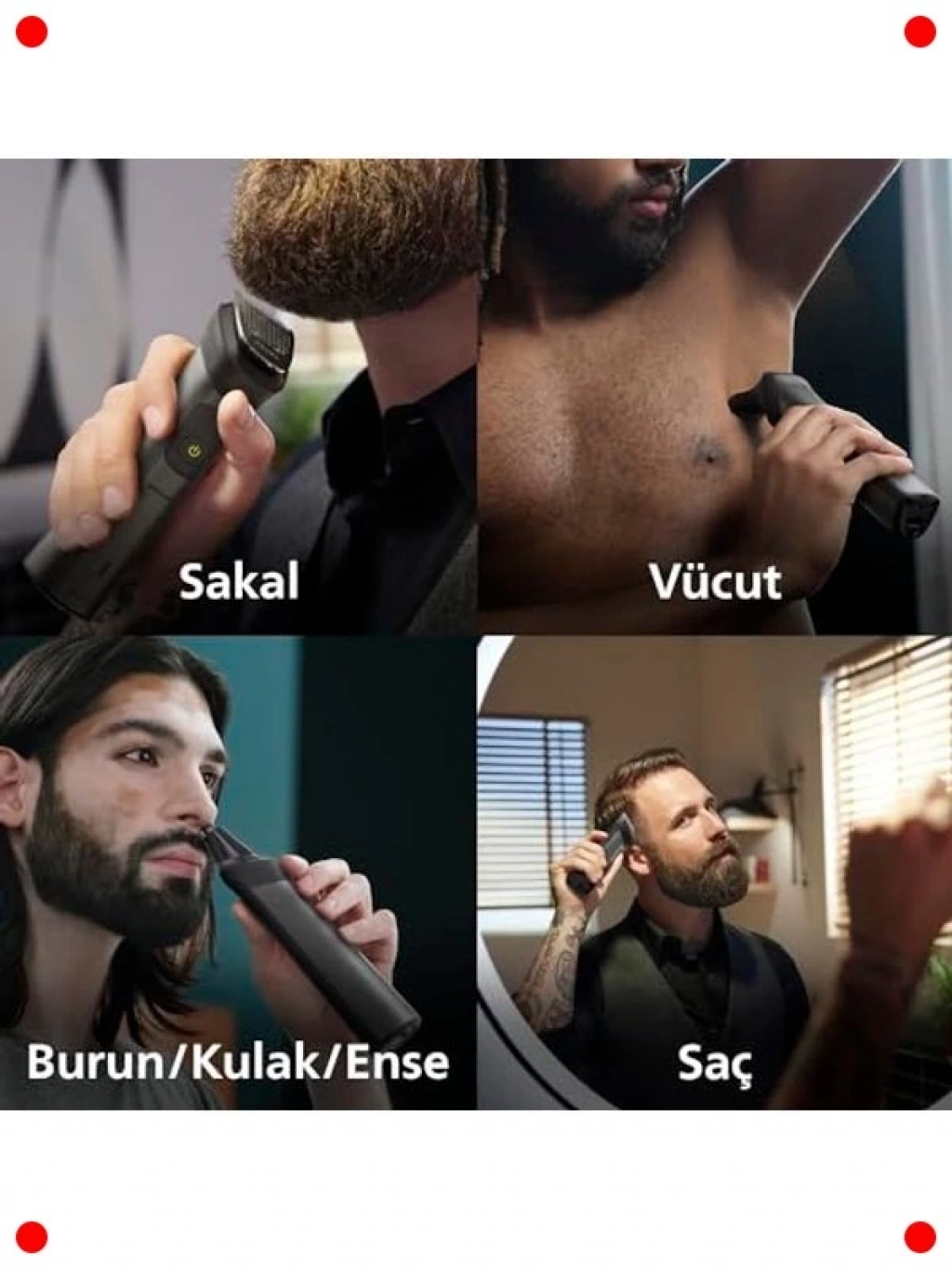 Erkeklere özel olarak tasarlanmış bu 13'ü 1 arada bakım seti, yüz, saç ve vücut için eksiksiz bir kişisel bakım deneyimi sunar. Güçlü motoru ve çeşitli başlıkları sayesinde sakal, saç ve vücut tüylerini istediğiniz uzunlukta şekillendirmenizi sağlar. Islak ve kuru kullanıma uygun olması, duşta bile rahatça tıraş olabilme veya şekillendirme yapabilme özgürlüğü sunar. Kablosuz kullanım imkanı ve uzun pil ömrü sayesinde seyahatlerde veya evde rahatlıkla kullanılabilir. Tüm grooming ihtiyaçlarınızı tek bir cihazda birleştiren bu set, keskin ve dayanıklı bıçaklarıyla her zaman kusursuz sonuçlar vaat eder.