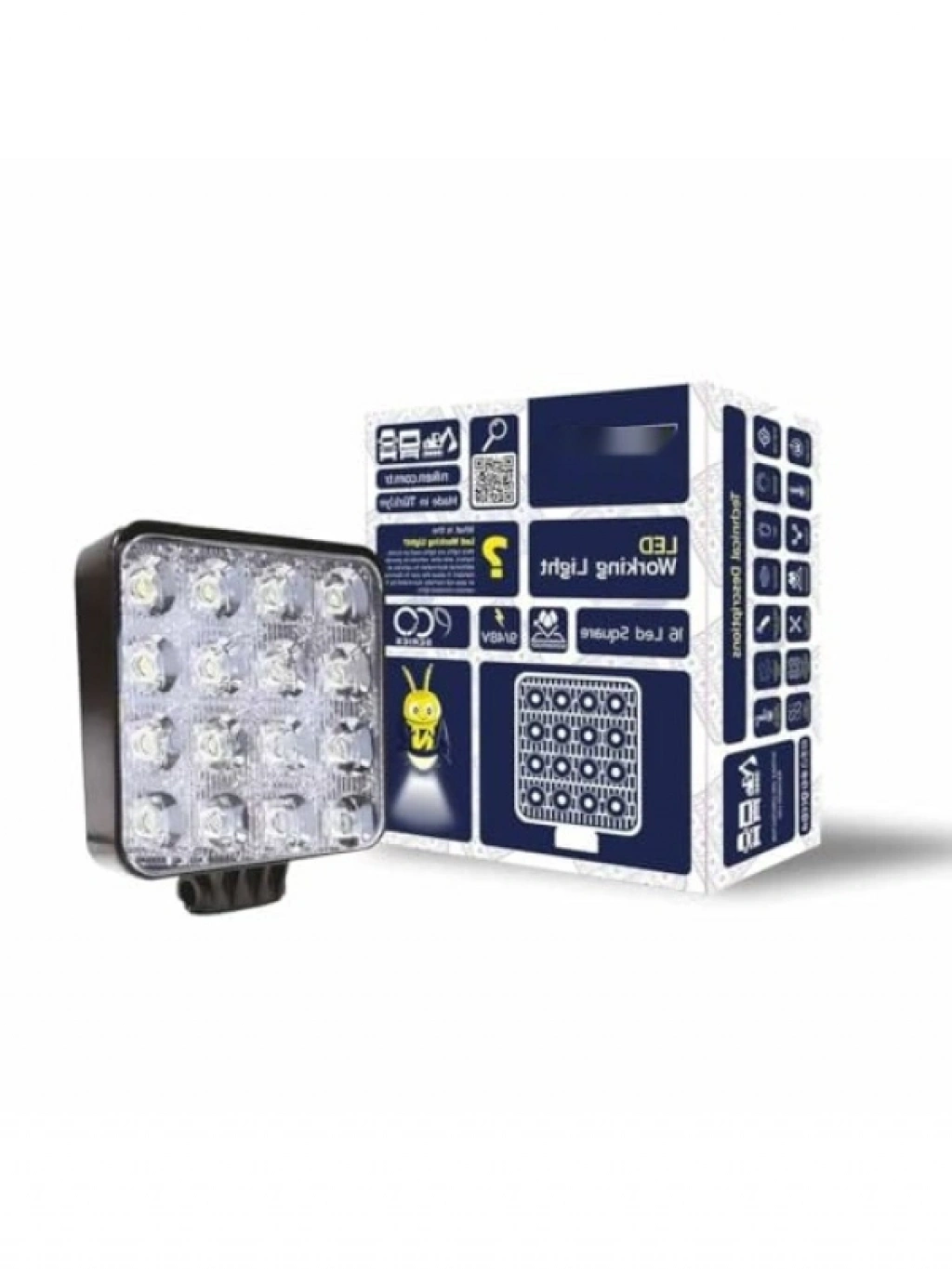 Profesyonel kullanım için tasarlanmış 16 LED'li kare çalışma lambası, aydınlatma ihtiyacınızı karşılamak üzere idealdir. Otomotiv sektöründe kullanılan bu lamba, çeşitli alanlarda aydınlatma sağlamak için mükemmel bir yardımcı ekipmandır. Dayanıklı yapısı sayesinde uzun ömürlüdür.