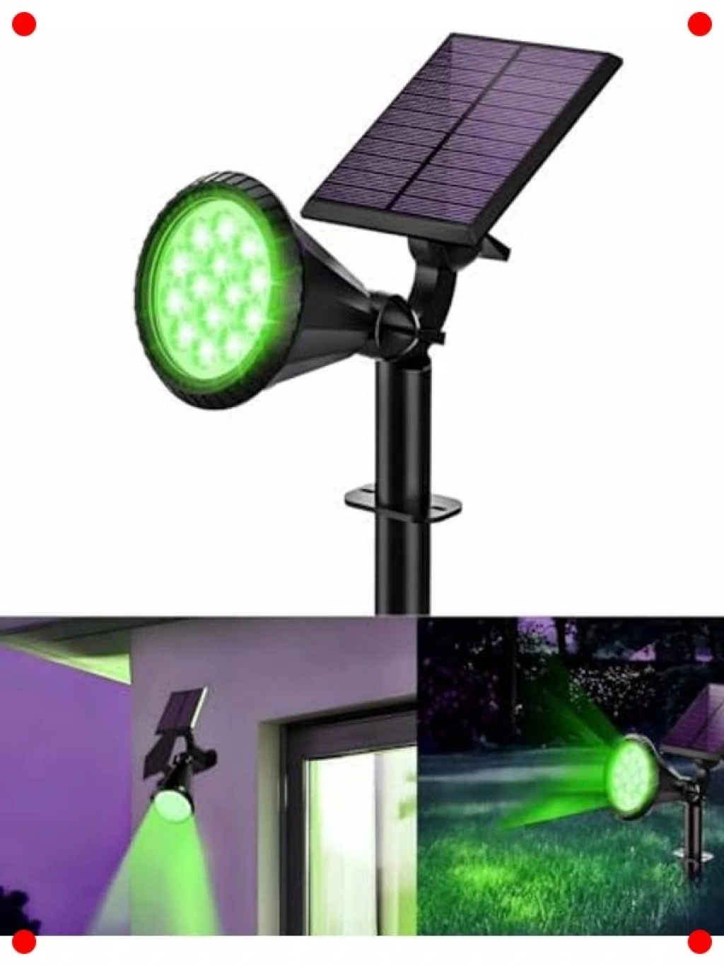 Bahçenizi veya dış mekanlarınızı güçlü ve enerji tasarruflu bir şekilde aydınlatın. Bu 18 LED'li güneş enerjili spot lamba, fotosel özelliği sayesinde otomatik olarak karanlıkta yanar ve gün ışığında söner. 18W gücündeki LED'ler, geniş bir alanı parlak yeşil ışıkla aydınlatır. IP65 su geçirmezlik derecesiyle her türlü dış mekan koşuluna dayanıklıdır. 42 cm'lik uzunluğu ve spike (kazık) veya aplik (duvar) montaj seçenekleriyle ağaçları, verandalari, garajları, havuz çevresini veya duvarları vurgulamak için idealdir. Çevre dostu ve kablosuz kurulum avantajı sunar.