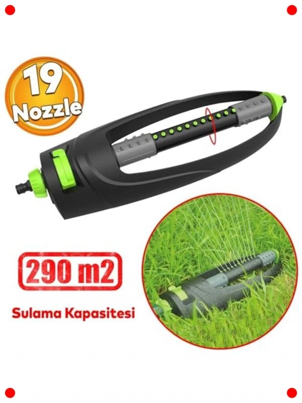 Bahçenizin ve çimlerinizin eşit ve verimli bir şekilde sulanmasını sağlayan bu 19 nozullu dönerli su fıskiyesi ile sulama işlerinizi kolaylaştırın. Çok sayıda ayarlanabilir nozulu sayesinde geniş bir alanı kapsar ve her noktaya eşit su dağıtımı yapar. Döner mekanizması, sulama alanını optimize ederek suyun doğru yere ulaşmasını sağlar. Dayanıklı plastik malzemeden üretilmiş olup, dış mekan koşullarına karşı oldukça dirençlidir. Kolay kurulumu ve kullanımı sayesinde herkes tarafından rahatlıkla kullanılabilir. Suyun ziyan olmasını engelleyerek, yeşil alanlarınızın her zaman canlı ve sağlıklı kalmasına yardımcı olur.