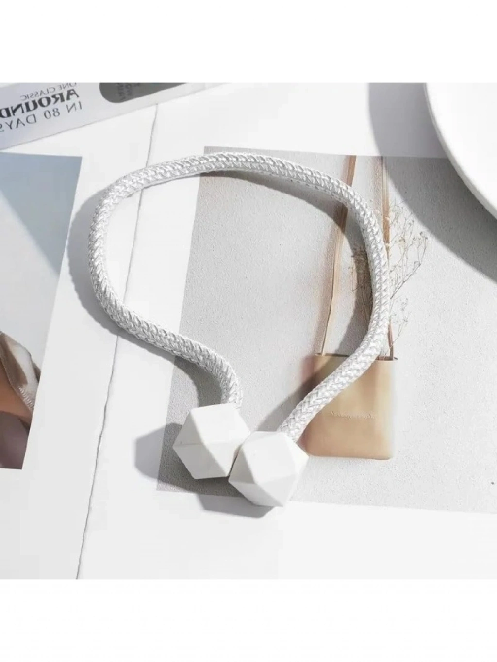 Bu zarif kare şekilli manyetik perde klipleri, şık beyaz rengi ile modern bir görünüm sunar. Güçlü mıknatıslı yapısı sayesinde perdelerinizi kolayca tutturabilir ve düzenli bir görünüm elde edebilirsiniz. Set içeriğinde 2 çift (4 adet) dekoratif perde tutucu ve 40 cm uzunluğunda örgülü kordon yer alır. Her türlü kalınlıktaki perde kumaşı ile uyumludur, ev dekorasyonunuzda estetik bir detay sağlar.
