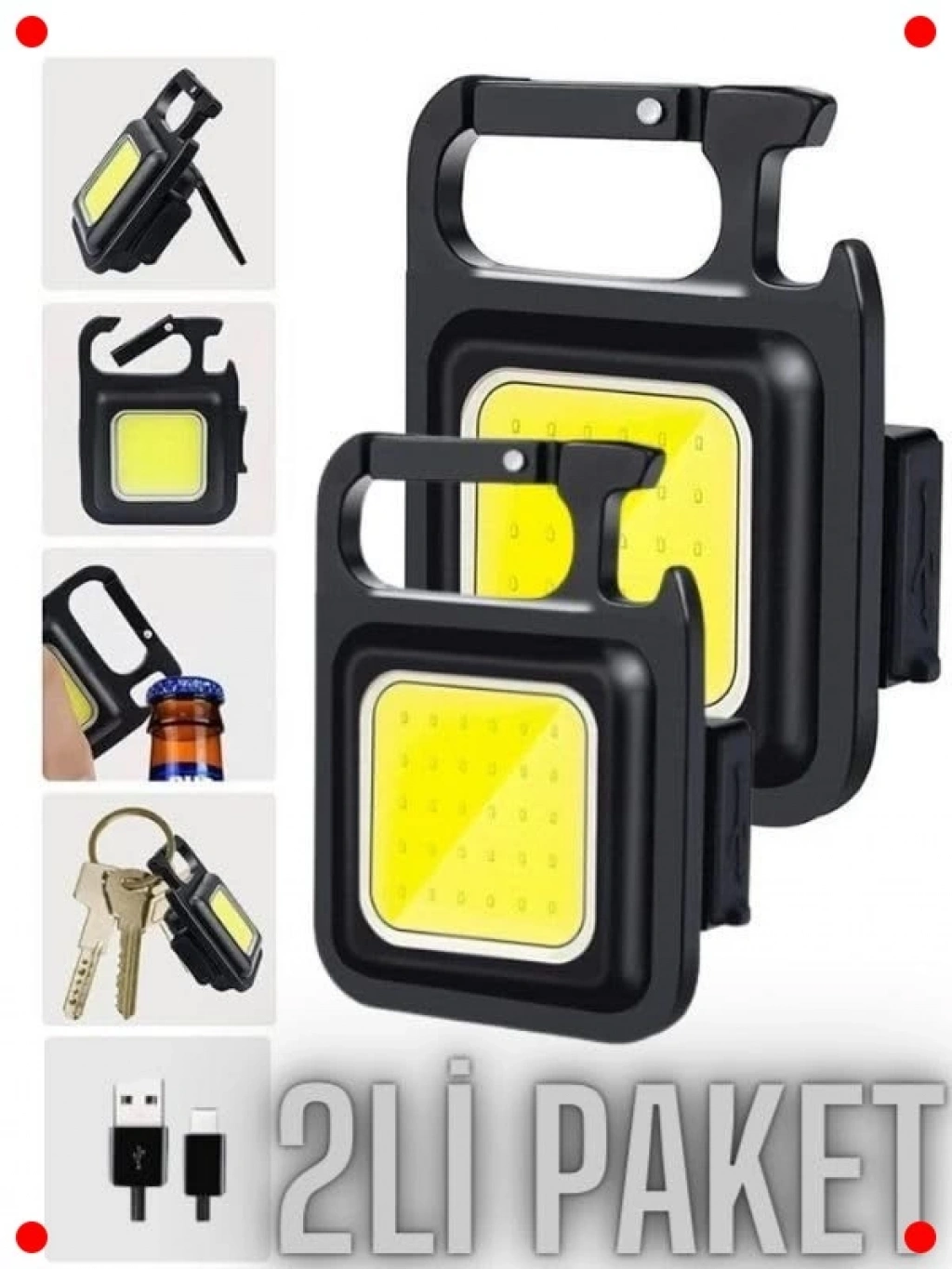 Anahtarlığınıza takabileceğiniz bu 2 adet kompakt ve çok fonksiyonlu cep feneri ile karanlıkta asla yalnız kalmayın. USB üzerinden şarj edilebilir özelliği sayesinde pil derdini ortadan kaldırır ve her zaman kullanıma hazır olur. Güçlü COB LED'leri sayesinde etkileyici bir aydınlatma sunar. Metal kasası darbelere karşı dayanıklılık sağlarken, entegre şişe açacağı özelliğiyle beklenmedik anlarda pratik bir yardımcıya dönüşür. Kampta, acil durumlarda veya günlük kullanımda vazgeçilmeziniz olacak bu fenerler, cebinizde veya çantanızda minimum yer kaplar. Şık tasarımıyla da göz doldurur.