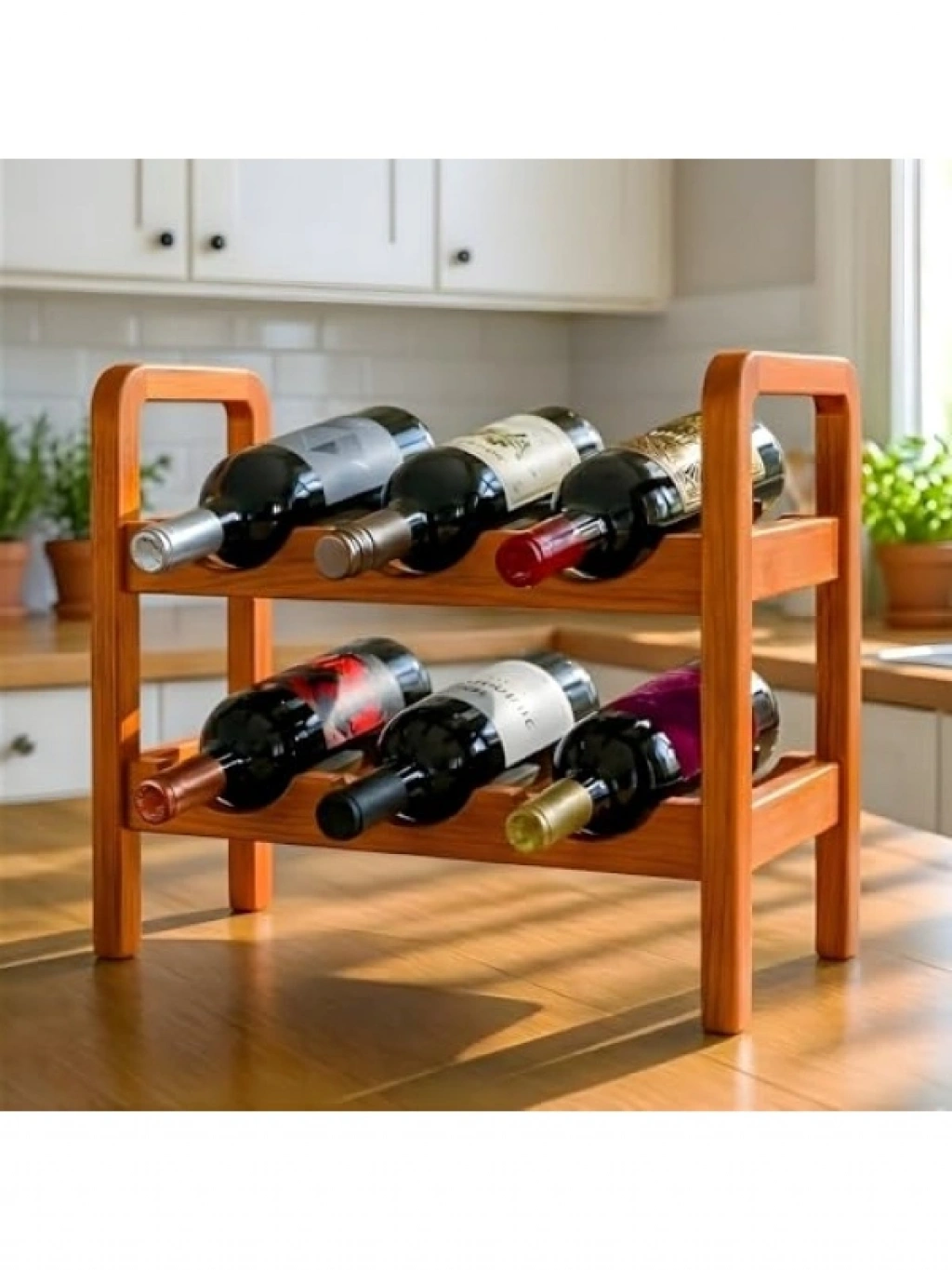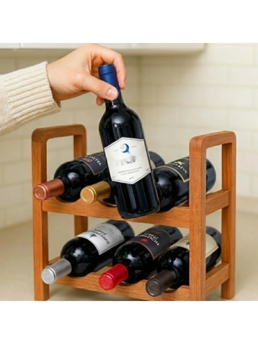Bu şık ve modern tasarıma sahip 2 katlı ahşap şaraplık, şişelerinizi düzenli bir şekilde saklamak için tasarlanmıştır. Ergonomik yuvaları sayesinde şişe etiketlerini görünür kılar. Basit montaj şeması ile kolayca kurulabilir ve duvara sabitleme opsiyonu ile ekstra stabilite sunar. Kaymaz taban pedleri, devrilmelere karşı destek noktası sağlar. Evinizdeki bar alanı, restoran veya butik otel gibi mekanlarda kullanabileceğiniz estetik bir ürün. Sürdürülebilir malzemelerle üretilmiştir.