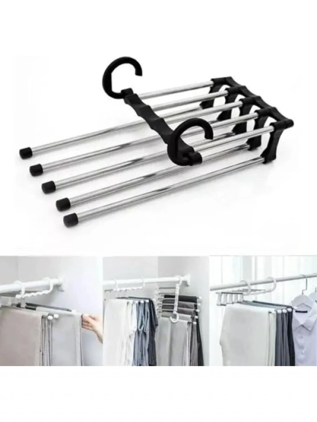 Bu pratik 2 katlı pantolon askısı, bir askıda 5 pantolon saklama imkanı sunarak gardırobunuzda yer tasarrufu sağlar. Geniş ve kaymayan klipsleri sayesinde pantolonlarınızı güvenli bir şekilde tutar ve düşme riskini en aza indirir. Hareketli tasarımı sayesinde pantolonlarınızı kolayca asabilir ve çıkarabilirsiniz. Uzun ömürlü kullanım için hafif ve dayanıklı bir yapıya sahiptir. Üstelik, pantolonlarınızın kumaşına zarar vermeden düzenli bir görünüm sağlar.