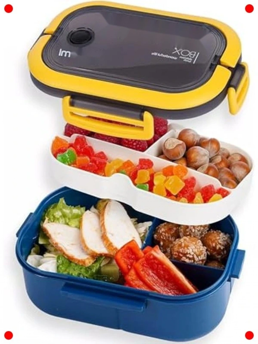 Sağlıklı ve pratik öğünler için tasarlanmış bu 2 katlı beslenme kutusu ile yiyeceklerinizi taze ve düzenli taşıyın. Yenilikçi 6 bölmeli tasarımı sayesinde farklı gıdaları birbirine karıştırmn taşıyabilir, öğünlerinizi çeşitlendirebilirsiniz. BPA içermeyen PP plastik malzemeden üretilş op sağlığınız için tamamen güvenlidir. Sızdırmaz yapısı sayesinde çantanızda dökülme endişesi yaşamazsınız. Setin içinde bunan çl, kaşık ve bıçak seti ile her zaman hazırsınız. Okul, ofis veya piknikler için idealdir. krodalga ve bulaşık makinesinde kullanıma uygundur. Çevre dostu ve yeniden kullanılabilir bir çözümdür.