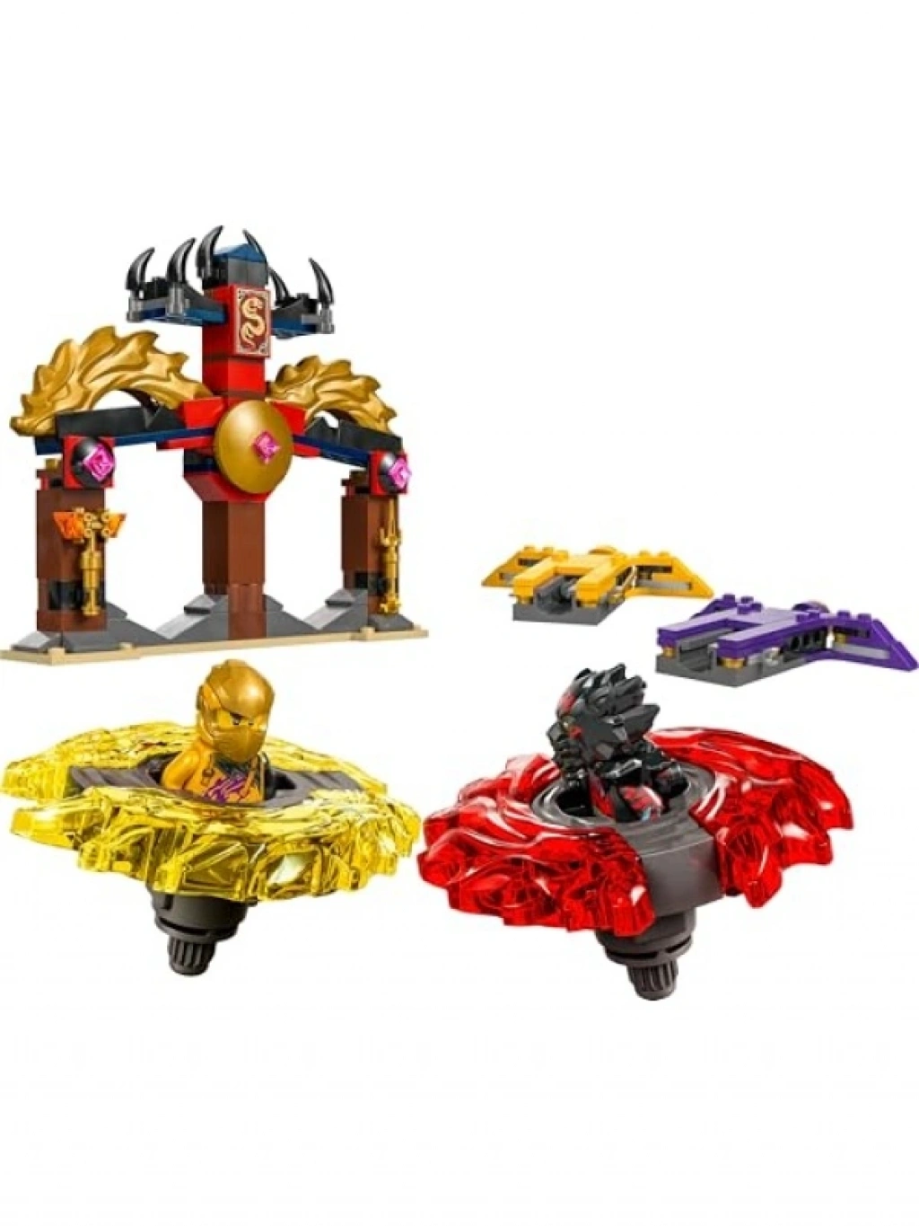 Bu heyecan verici savaş paketi, çocukların NINJAGO dünyasına adım atmalarını sağlar. Set, 2 adet hızlı topaç ve yıkılabilen bir savaş arenası içermektedir. Çocuklar, ninjaların dönen savaşlarını canlandırarak eğlenceli zaman geçirebilirler. Arin ve Ras karakterleri ile çocuklar, kılıçlarıyla donanmış ninja figürleriyle heyecan dolu düellolar gerçekleştirebilir. Bu yapım seti, ayrıca diğer LEGO NINJAGO setleriyle birleştirilerek daha büyük maceralara kapı açmaktadır.
