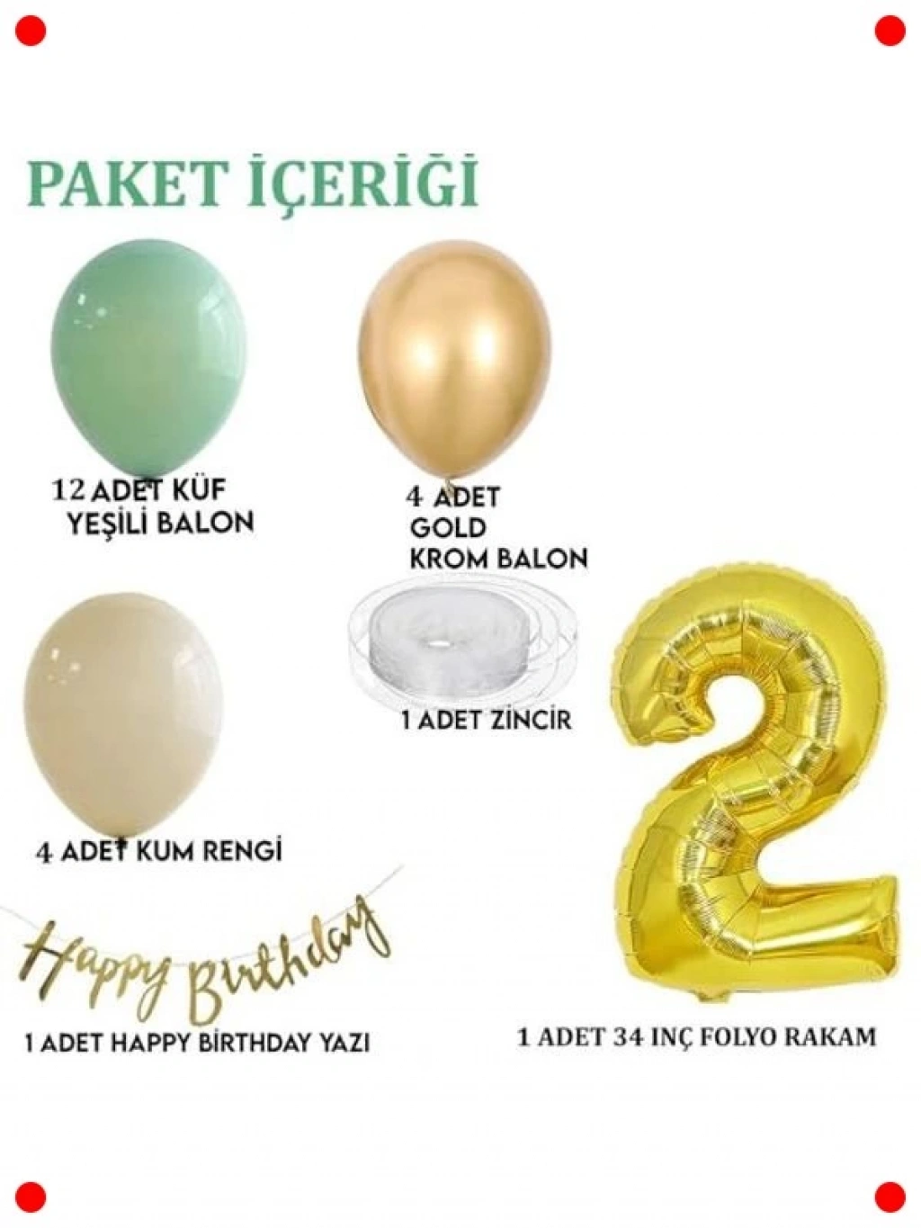 Minik prenses veya prensinizin ikinci yaş gününü, göz alıcı bir konseptle kutlayın! Bu özel parti seti, küf yeşili, deniz kumu ve krom gold gibi modern ve şık renklerle tasarlanmış balon kombinasyonları içerir. Doğum günü kutlamanıza sofistike ve unutulmaz bir atmosfer katmak için özenle seçilmiş bu renkler, fotoğraf karelerinizi güzelleştirecek. Set, parti alanınızı kolayca dekore etmeniz için gerekli tüm balonları ve aksesuarları içerir. Hem çocukların hem de yetişkinlerin beğenisini kazanacak bu konsept, ikinci yaş günü kutlamanıza zarafet ve neşe katacak, özel anılarınıza renk katacaktır.