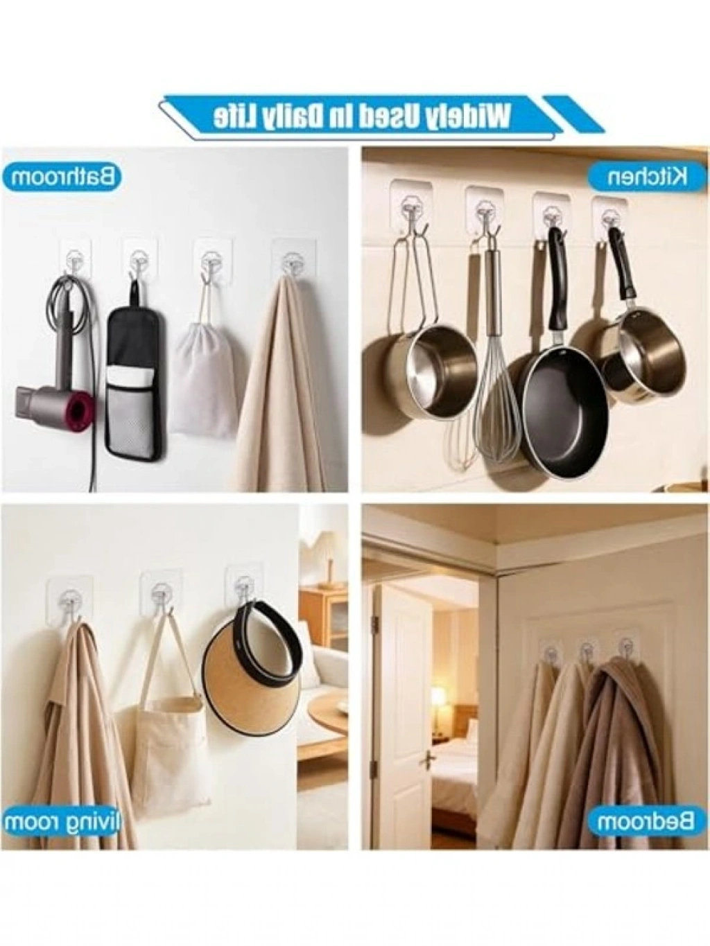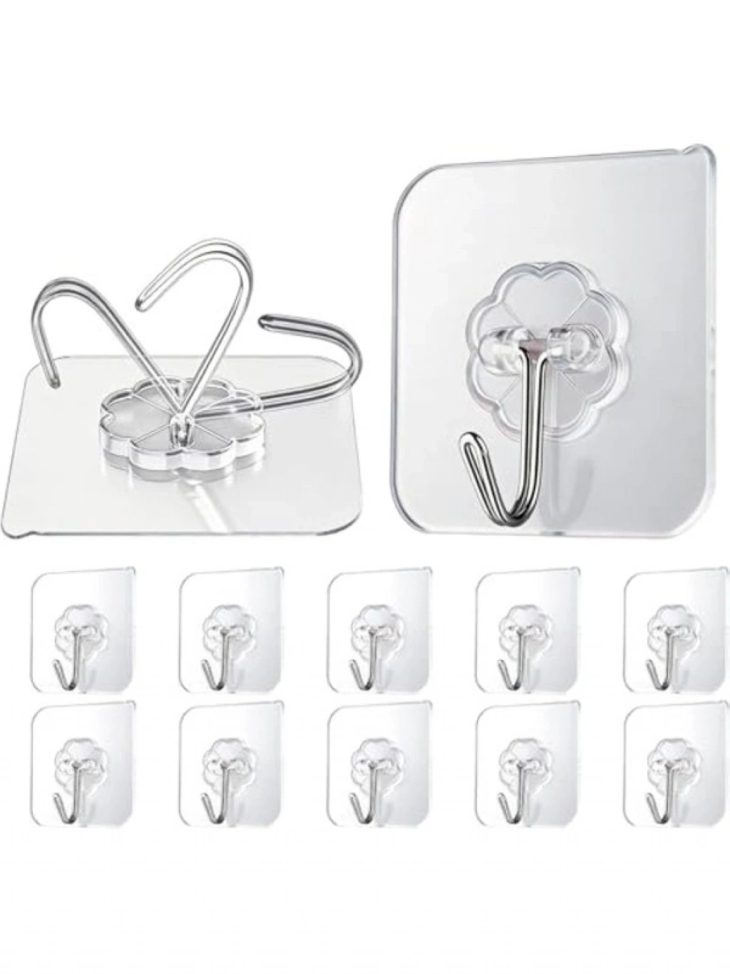 Kapı arkasında kullanabileceğiniz 20 adet güçlü yapışkanlı şeffaf duvar askısı, pratik bir organizer çözümü sunar. Yapışkanlı kanca yapısı ile her türlü yüzeye kolayca yapışarak yer tasarrufu sağlar, eşyalarınızı düzenlemenizi kolaylaştırır. Kullanışlı ve işlevsel tasarımı sayesinde evdeki dağınıklığı ortadan kaldırır.