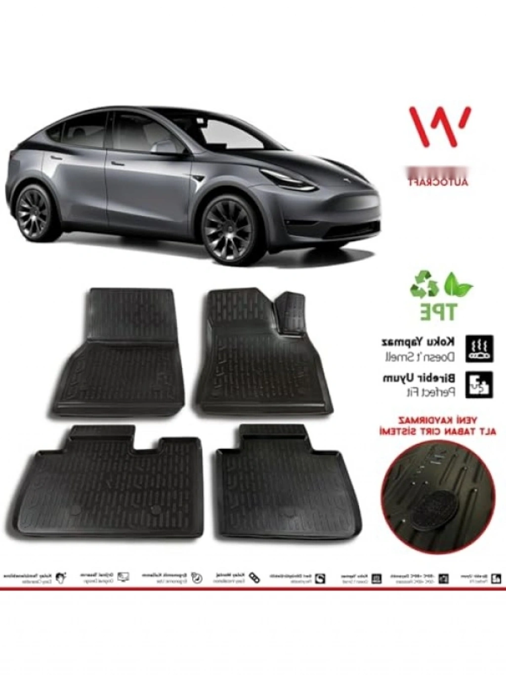 Tesla Model Y araçları için özel olarak tasarlanmış 3D havuzlu paspas, 2019 sonrası modellerle mükemmel uyum sağlar. Su geçirmez özellikteki dayanıklı malzemesi sayesinde iç mekanınızı korur. Yüksek kaliteli yapısı ile uzun süreli kullanım sunarken, hafif ve esnek tasarımı ile kolayca yerleştirilir ve çıkarılır. Temizliği son derece basit olan bu paspas, aracınızdaki kir ve döküntüleri etkili bir şekilde hapseder.