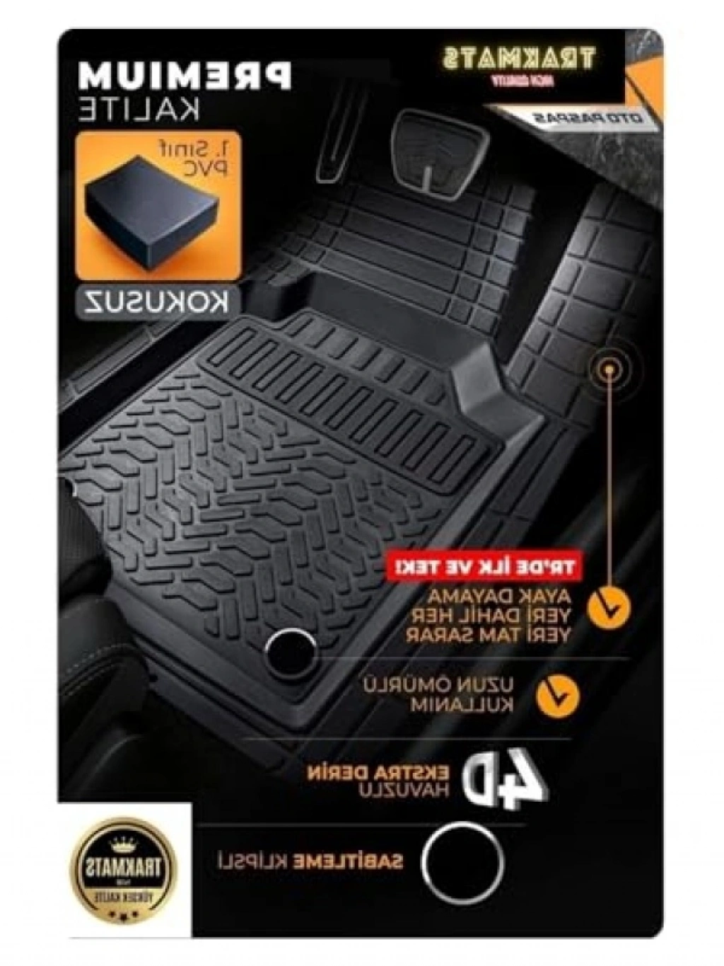 Bu yüksek kaliteli oto paspas, arabanızın zeminini su, kum ve yol tozu gibi dış etkenlerden koruyarak mükemmel bir koruma sunar. Kaymayı engelleyici alt tabana sahip olan bu paspas, geri katlanma yapmadan güvenli bir kullanım sağlar. Koku yapmayan materyali ile hem sağlığınızı hem de konforunuzu ön planda tutar. Temizliği son derece kolaydır; yıkanabilir yapısı sayesinde uzun ömürlü bir kullanım sunar. Hava sıcaklıklarının sıfırın altında olduğu durumlarda bile çatlama ya da sertleşme yapmadan dayanıklılığını korur. Bu paspas, aracınızın iç mekanını zenginleştirirken, estetik bir görünüm de sağlar.