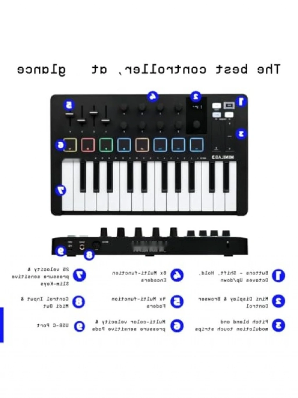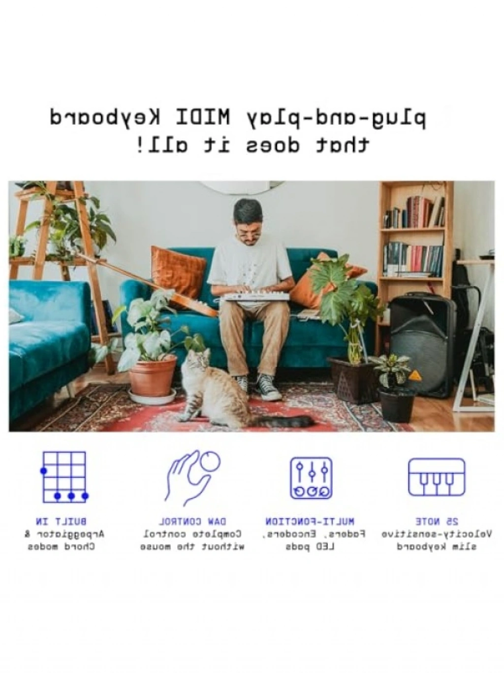 Bu yüksek kaliteli klavye, 25 nota hız hassasiyetli yapısı ile müzik prodüksiyonunuzu bir üst seviyeye taşır. Tactile kontrolleri ile kullanımı oldukça rahattır. Gerçek zamanlı geri bildirim sağlayan mini ekran ve çeşitli modlar ile zengin müzikal deneyimler sunar. DAW yazılımları ile kolayca entegre olur.