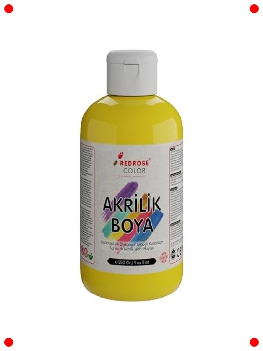 Sanat projelerinize parlak ve canlı bir dokunuş katın! Bu 250 gramlık sarı renk akrilik boya, profesyonel kalitede pigmentasyonu sayesinde her türlü sanatsal çalışmanız için idealdir. Kanvas, ahşap, kağıt, seramik gibi çeşitli yüzeylerde kolayca kullanılabilir ve hızlı kuruma özelliği sayesinde katmanlı çalışmalar yapmanıza olanak tanır. Su bazlı yapısıyla kolay temizlenir ve kokusuzdur. Dayanıklı ve kalıcı renkleriyle eserlerinizin yıllarca canlı kalmasını sağlar. Hem amatörler hem de deneyimli sanatçılar için vazgeçilmez bir malzemedir.