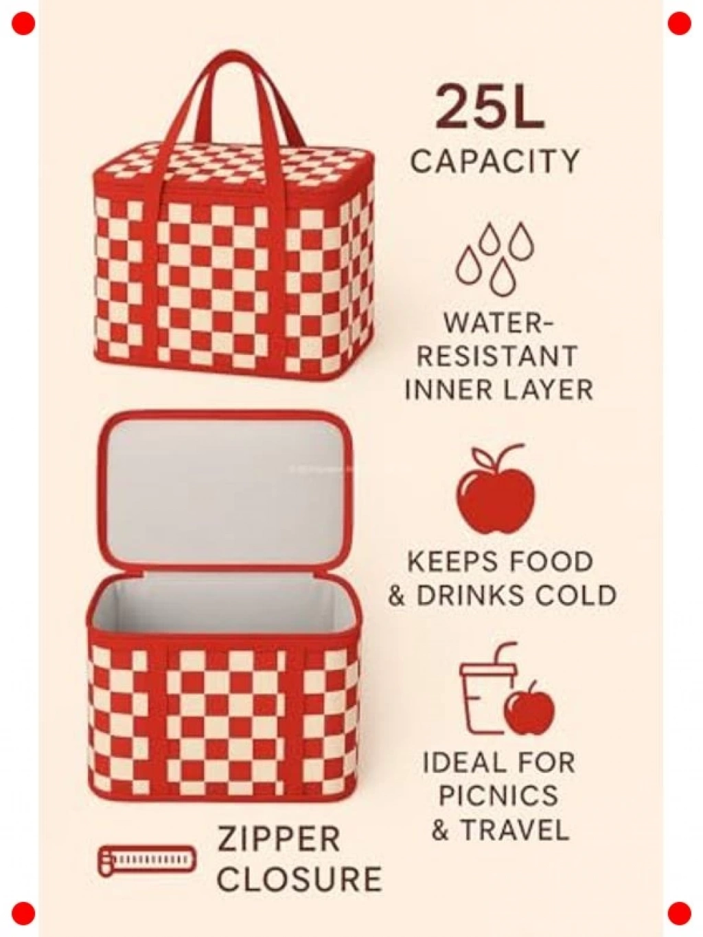 Açık hava etkinlikleriniz için mükemmel bir seçim olan bu 25 litrelik termos çanta ile yiyecek ve içeceklerinizi saatlerce ideal sıcaklıkta muhafaza edin. Yüksek performanslı izolasyon teknolojisi sayesinde ürünlerinizin ısısını korur. Suya dayanıklı iç kaplaması, sızıntıları önler ve kolay temizlik imkanı sunar, böylece hijyenik bir kullanım sağlar. Geniş iç hacmi ve fermuarlı kapak tasarımıyla güvenli bir taşıma deneyimi sunar. Piknik, kamp, plaj veya günlük alışverişlerinizde taşınabilir ve pratik bir çözümdür. Sağlam yapısı sayesinde uzun ömürlü kullanım garantisi verir.