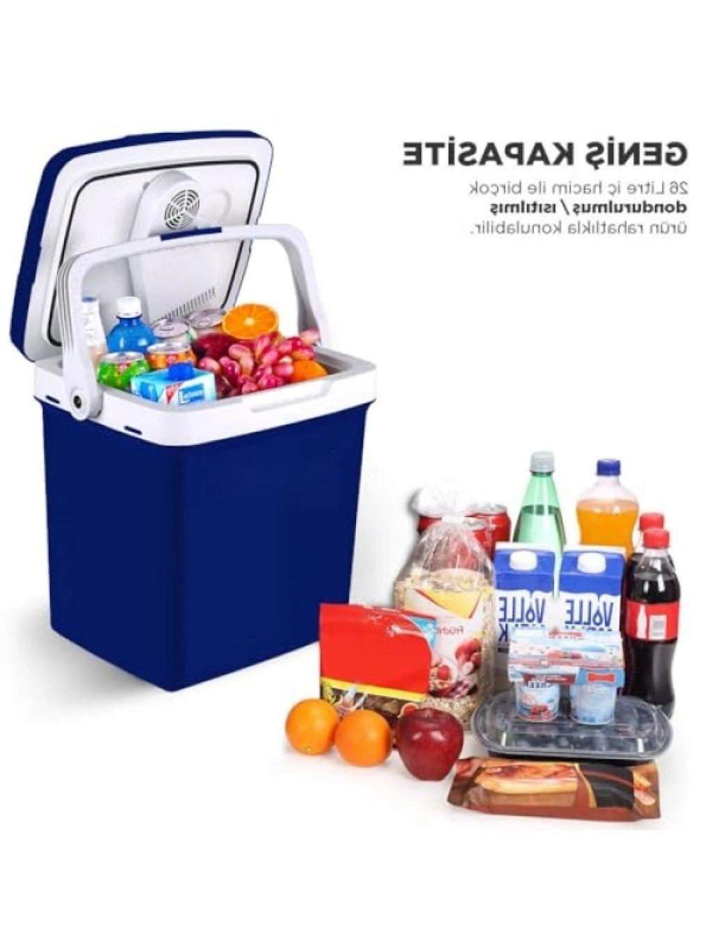 12V araç çakmak girişi ve 220V şebeke elektriği ile çalışabilen bu termoelektrikli buzdolabı, 26 litre kapasitesiyle yiyecek ve içeceklerinizi soğuk tutar. 6 adet 1,5 litrelik şişe veya 30 adet 330 ml kutu kola rahatlıkla sığar. Kullanım kolaylığı sağlayan hafif ve taşınabilir tasarımı ile her türlü yolculukta ideal bir arkadaştır.