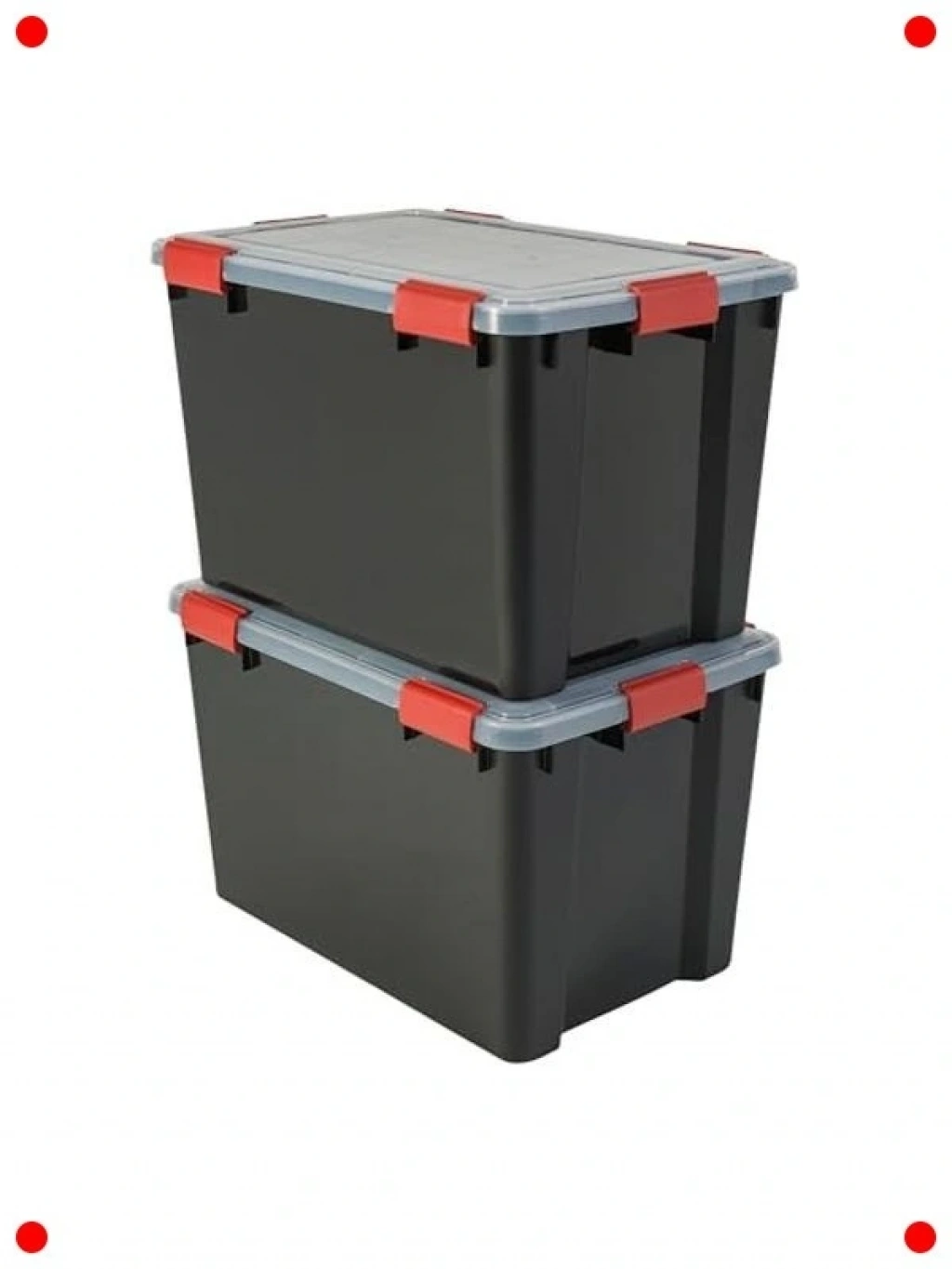 Eşyalarınızı düzenli ve güvenli bir şekilde saklamak için ideal olan bu 2'li ha geçirmez saklama kutusu seti, her biri 70 litre kapasiteye sahiptir. Güçlü klipsleri sayesinde kutunun kapağı tamamen kapanır ve içeriye toz, nem veya böcek girmesini engeller. Bu özellik, özellikle garaj, kiler veya tan arası gibi alanlarda saklanan eşyalar için büyük antaj sağlar. İstiflenebilir yapısı sayesinde dikey depolama alanı yaratır ve yerden tasarruf etmenizi sağlar. Dayanıklı malzemeden üretilştir, böylece uzun yıllar güvenle kullanabilirsiniz. Siyah rengiyle şık bir görünüm sunar.