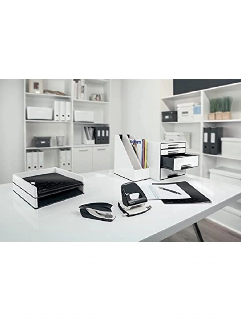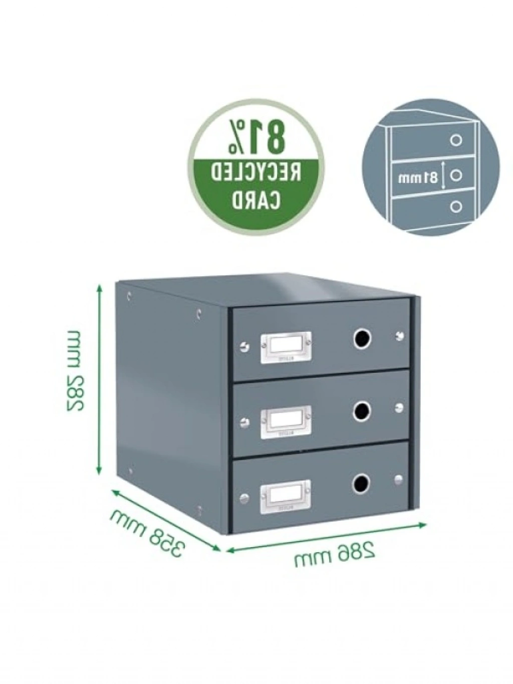 Bu 3 çekmeceli evrak rafı, A4 formatındaki belgelerinizi düzenlemek için idealdir. Her bir çekmece 800 A4 sayfa kapasitesine sahiptir. Kolay indeksleme için etiket tutucularla donatılmıştır. Kullanılmadığında yerden tasarruf etmek için demonte edilebilir. Güçlü premium kartondan üretilmiştir ve metal kavrama yeri sayesinde çekmeceler kolayca açılır.