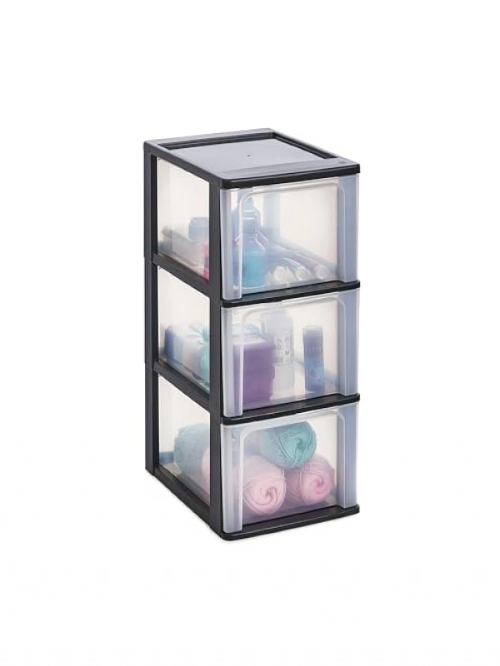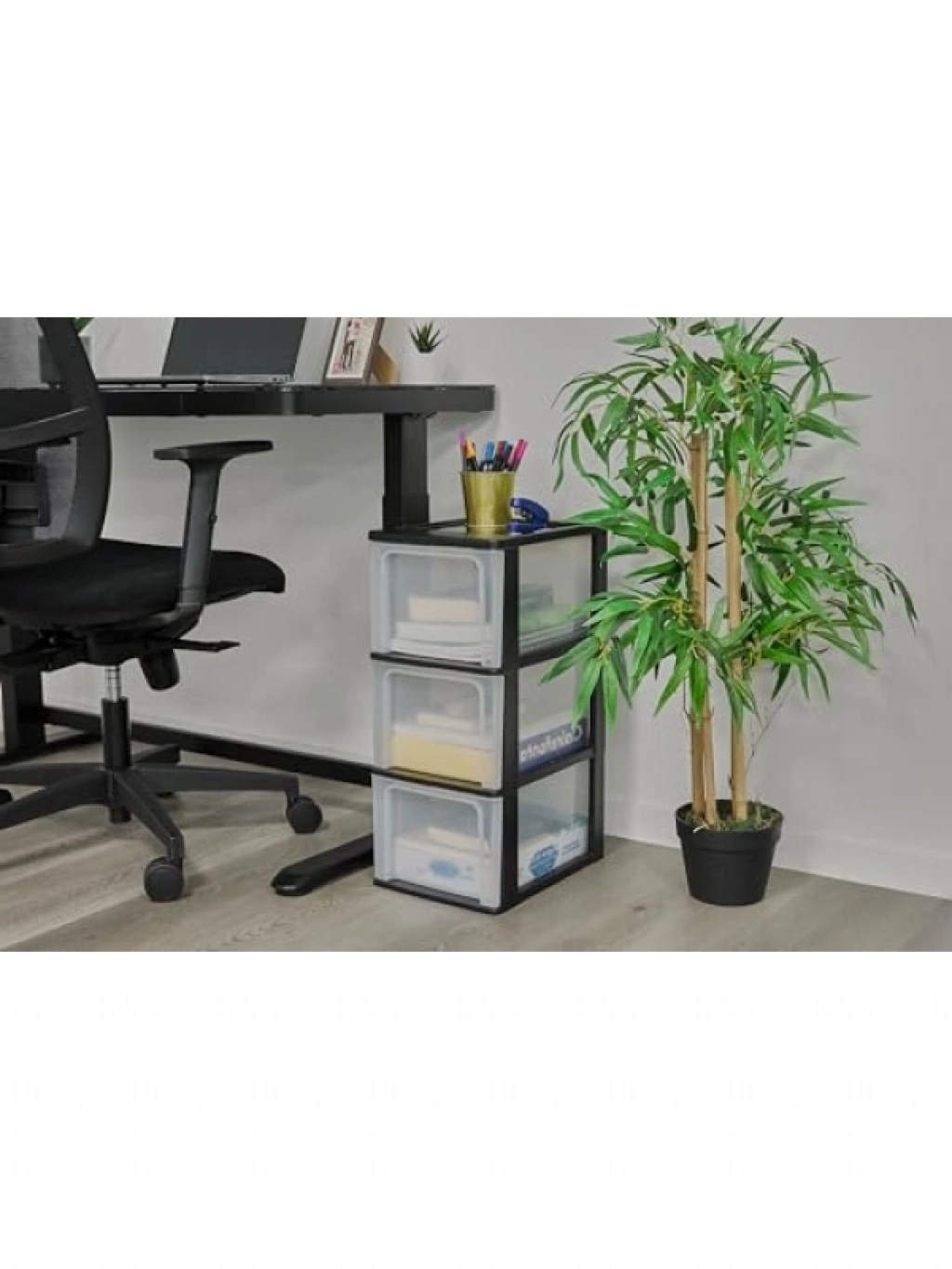 Bu şık tasarımlı depolama kutusu, 3 derin çekmecesi ile ofis, okul veya evde düzen sağlamanıza yardımcı olur. BPA içermeyen kaliteli plastikten üretilmiştir ve A4, A5, A6 formatındaki belgeleri rahatlıkla saklayabilirsiniz. Ergonomik entegre sapları sayesinde günlük kullanımda kolaylık sağlar. Modern ve sade görünümü ile her alana uyum sağlar.