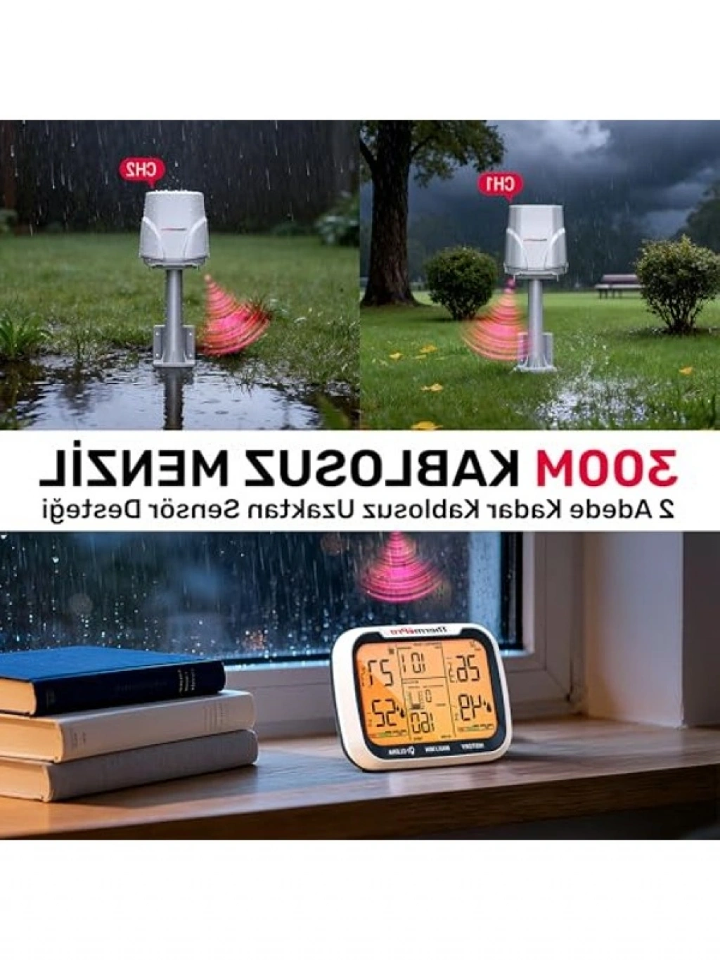 Bu dijital termometre, üç dış sensörüyle birlikte dört farklı noktada sıcaklık ve nem takibi yapmanıza izin verir. 183 metreye kadar olan mesafede güçlü kablosuz sinyal ile veri aktarımı sağlarken, dokunmatik ve ışıklı LCD ekranı ile modern bir kullanım sunar.