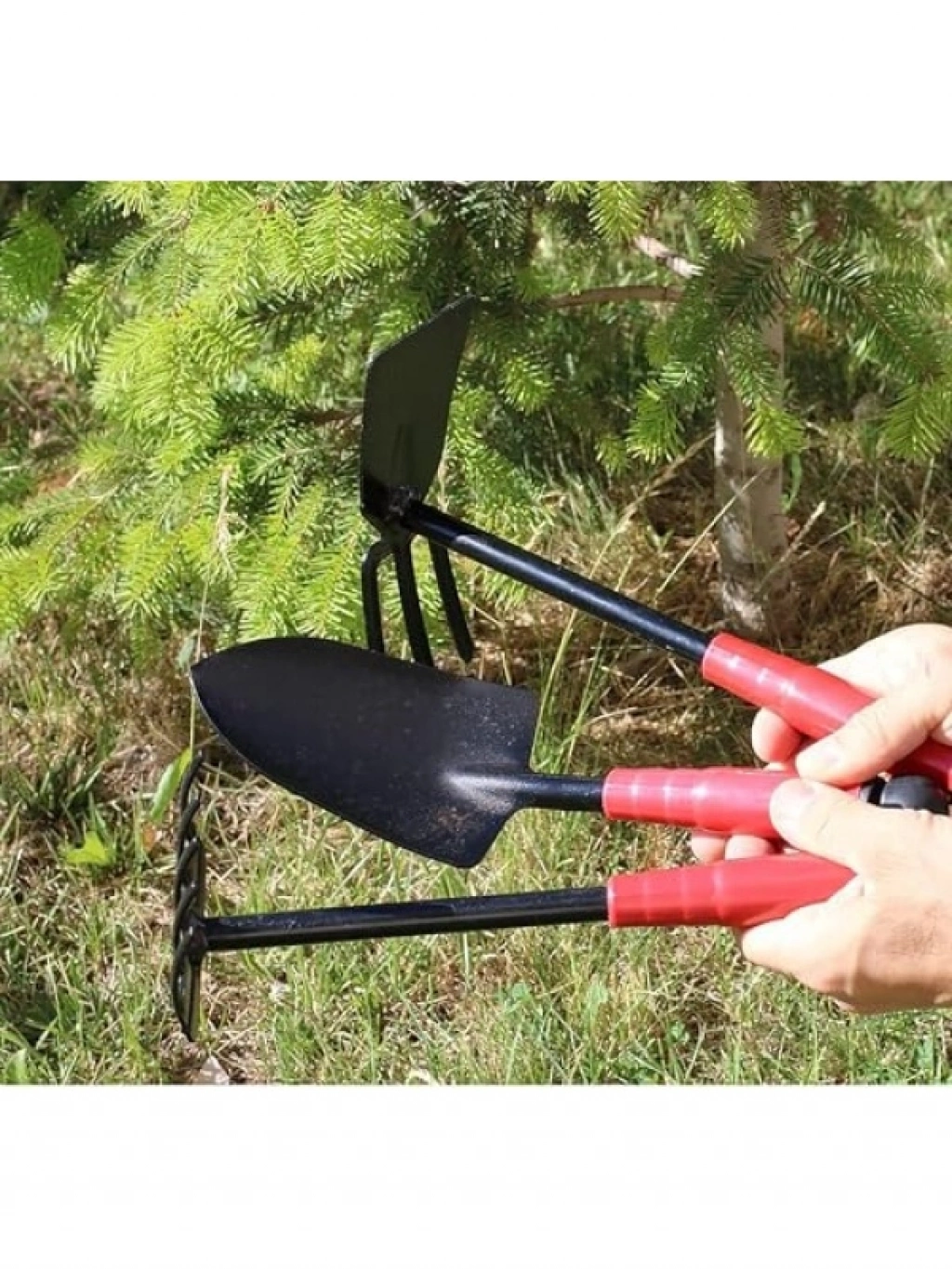 Bahçe bakımınızı kolaylaştıracak olan bu 3 parça el aleti seti, dayanıklı metal kürek, çok amaçlı tırmık ve kullanışlı çapa içerir. Kırmızı kaplamalı tutma yerleri ile ergonomik bir tasarıma sahiptir, uzun süreli kullanım konforu sağlar. Sağlam metal yapısı sayesinde, çiçek bakımı, sebze ekimi ve genel bahçe düzenlemesi için idealdir. Kolay taşıma ve depolama imkanı sunan kompakt boyutları ile pratik bir seçenektir.