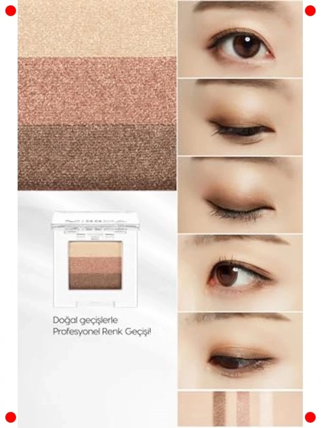 Göz makyajınıza derinlik ve ifade katacak bu 3 renkli göz farı paleti ile tanışın. Mocha Beige tonlarından oluşan bu özel seçki, hem gündüz doğal bir görünüm hem de akşam etkileyici bir makyaj için idealdir. Yumuşak ve ipeksi dokusu sayesinde göz kapaklarınıza kolayca uygulanır ve dağılır, dökülme yapmaz. Yüksek pigmentasyonu ile tek uygulamada dahi canlı ve kalıcı bir renk verir. Uzun süre kalıcı formülü sayesinde gün boyu göz makyajınızın tazeliğini korur. Gözlerinizi belirginleştirirken, farklı tonları bir araya getirerek sonsuz makyaj kombinasyonları yaratın.