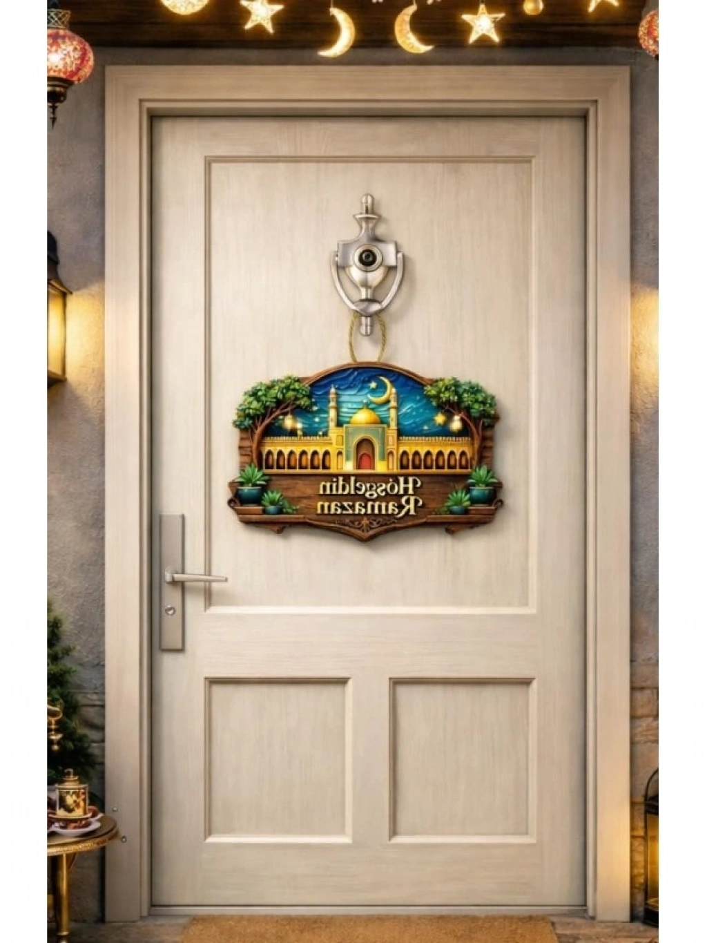 Ramazan ayının coşkusunu evinize taşıyan bu dekoratif kapı süsü, 30-27 cm ölçüleriyle dikkat çekiyor. 1. sınıf ahşap malzemeden üretilmiş olan bu süs, renkli boyama ile tasarlanmış olup, hem iç mekan hem de dış mekan kullanımı için idealdir. Ramazan süresince kapınızı süsleyerek misafirlerinizi karşılamak için mükemmel bir seçimdir. Dayanıklı yapısı sayesinde uzun süre kullanabilirsiniz.