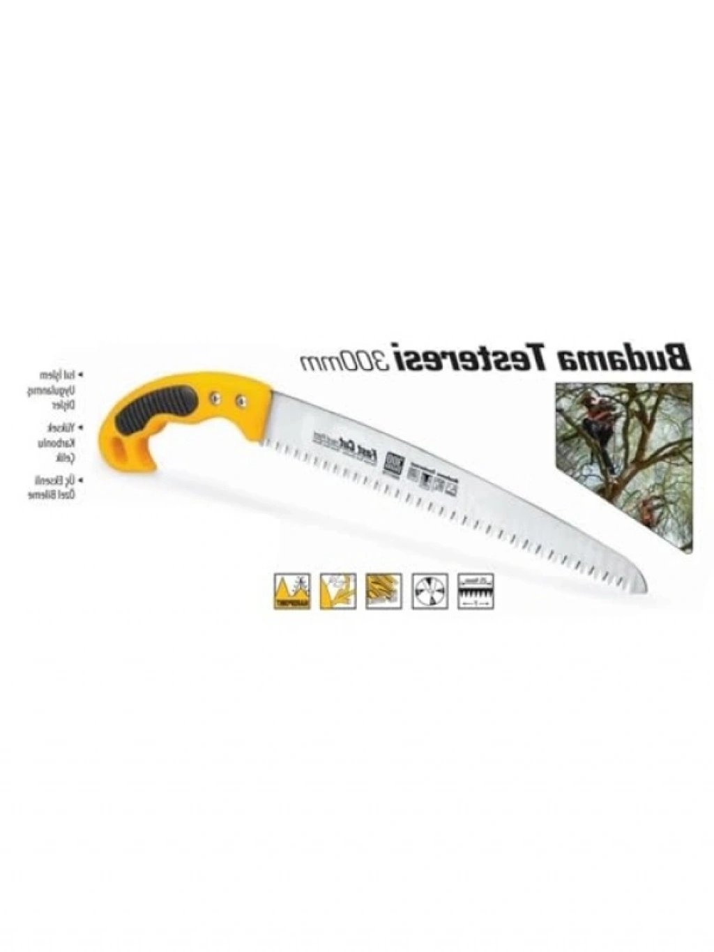 Yüksek karbonlu çelikten üretilmiş 30 cm boyutundaki budama testeresi, ısıl işlem uygulanmış kesici dişlere sahiptir. Bu özellik, hızlı ve etkili kesim yapmanızı sağlar. Üç eksenli özel bileme işlemi ile kesim performansı artırılmıştır. Krom kaplı yüzeyi sayesinde uzun ömürlü ve dayanıklıdır. Bahçe işlerinizi kolaylaştıracak ideal bir alet.