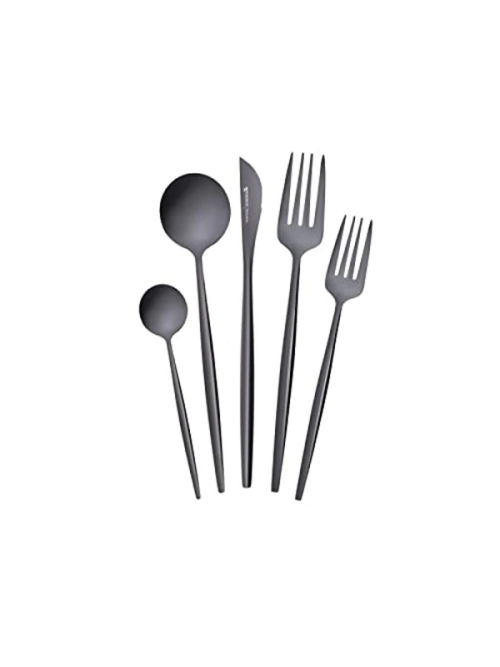 Modern tasarımı ve şık siyah rengi ile bu 30 parça çatal, kaşık, bıçak takımı, sofralarınıza zarafet katacak. 6 kişilik set, her misafir için eksiksiz bir yemek deneyimi sunar. Paslanmaz çelikten üretilmiş olup, uzun ömürlü ve sağlıklı bir kullanım sağlar. Ergonomik tutuşu sayesinde yemek yerken konfor sunar. Şıklığı ve işlevselliği bir arada bulunduran bu set, her türlü yemek masası için ideal bir seçimdir.