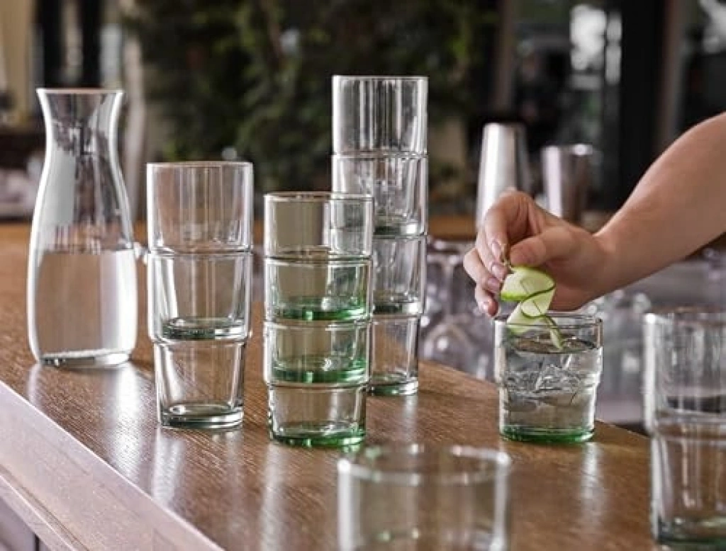Şık ve kullanışlı 300 cc su bardağı seti, 4 parçadan oluşuyor. %100 geri dönüştürülmüş cam malzemeden üretilmiş olup, hem doğaya duyarlıdır hem de zarif bir sunum sağlar.