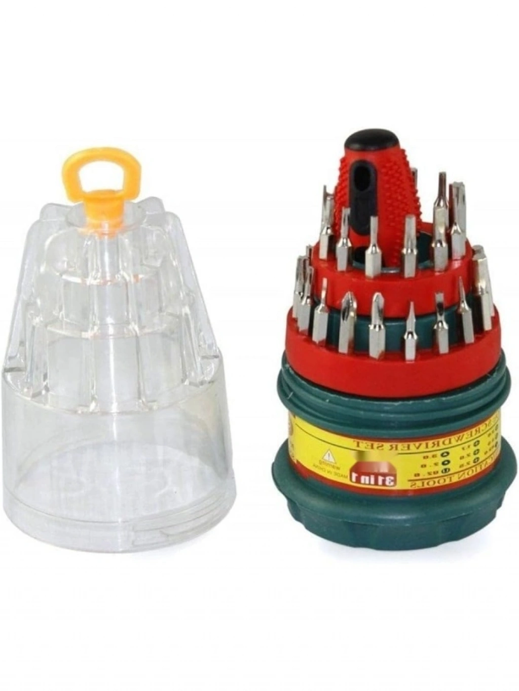 Bu 31 parçalı hassas tornavida seti, metal başlık, mıknatıslı uçlar ve kauçuk tutma yeri ile ergonomik bir tasarıma sahiptir. Özellikle cep telefonu ve elektronik aletlerin tamirinde büyük kolaylık sağlar. Set, ince ve dar alanlara ulaşabilme özelliği ile tüm vidalama işlemlerini rahatlıkla gerçekleştirmenize olanak tanır. Taşıma haznesi, özel yer kaplamaz tasarımı sayesinde her yere kolayca sığdırılabilir. Set içinde 1 adet tutucu kol, 5 adet çeşitli uç, 5 adet düz tornavida, 4 adet yıldız tornavida, 9 adet tork tornavida ve 1 adet plastik taşıma kutusu bulunmaktadır.