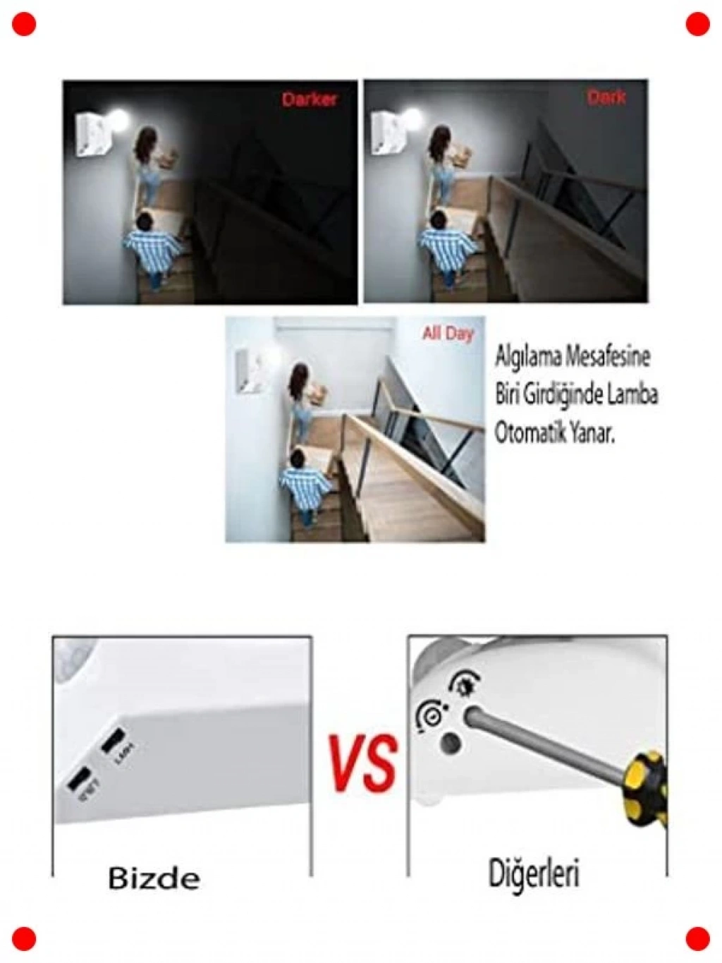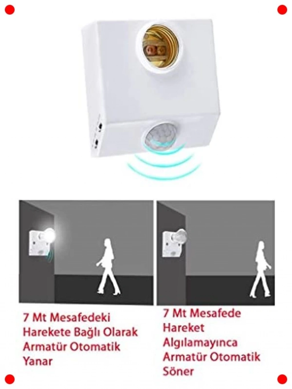Aydınlatma sistemlerinize akıllı bir dokunuş katacak 360 derece E27 duylu hareket sensörü. Geniş algılama açısı sayesinde mekanınızın her noktasındaki hareketleri hassas bir şekilde algılar ve bağlı olan lambayı otomatik olarak açar/kapatır. E27 duylu olması, mevcut aydınlatma armatürlerinize herhangi bir ek kablolama gerektirmeden kolayca entegre edilmesini sağlar. Gelişmiş sensör teknolojisi, sadece ihtiyaç duyulduğunda ışığı yakarak önemli ölçüde enerji tasarrufu yapmanıza yardımcı olur. Koridorlar, depolar, garajlar, giriş alanları veya merdiven boşlukları gibi yerlerde hem güvenlik hem de konfor sağlar. Montajı son derece basittir ve evinizde veya iş yerinizde pratik bir otomasyon çözümü sunar.