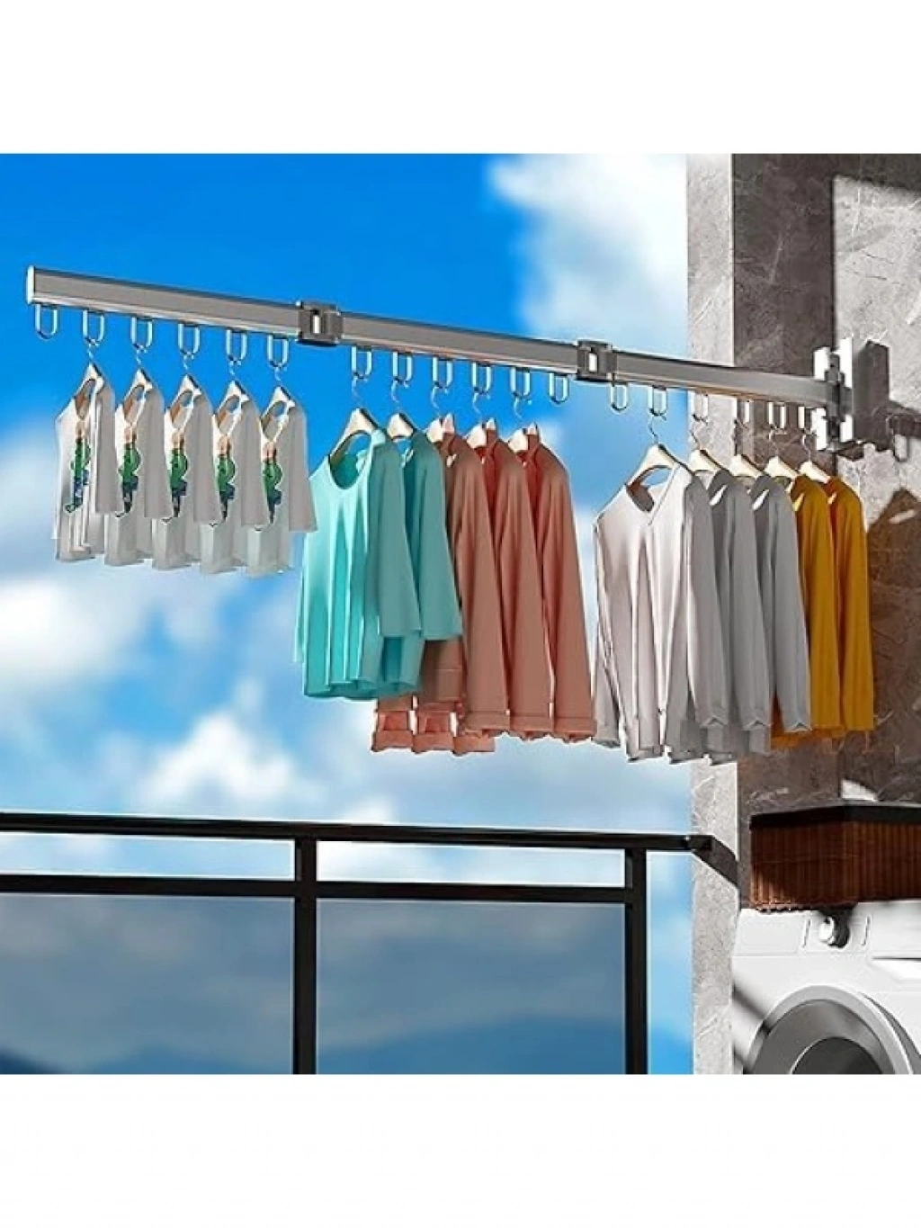 Yüksek kaliteli alüminyum malzemeden üretilen bu çamaşır kurutma aparatı, 360° dönebilme özelliği ile alan tasarrufu sağlar. Duvara monte edilebilir ve katlanabilir yapısı sayesinde kullanılmadığında yer kaplamaz. Kolay montaj için gerekli vida ve dübeller ile birlikte gelir. Geniş kurutma alanı sunarak birden fazla çamaşırı aynı anda kurutma imkanı tanır.
