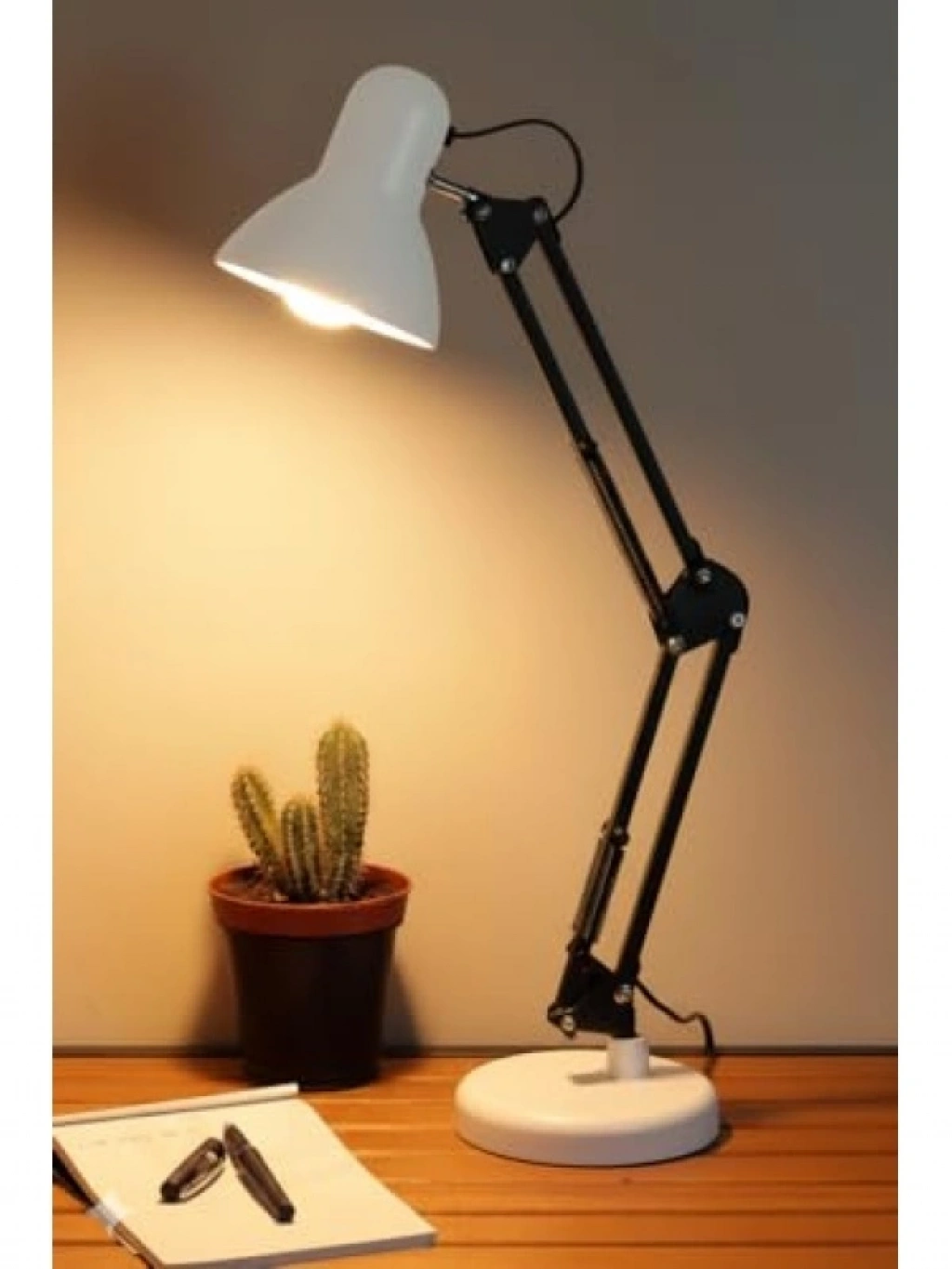 Bu masa lambası, 360° hareket kabiliyeti ile her açıdan aydınlatma sağlar. Sağlam metal gövdesi ile uzun ömürlü bir yapıya sahiptir. Göz yormayan aydınlatma sunarak kitap okuma ve çalışma alanlarınız için idealdir. E27 ampul uyumlu duyuyla, dilediğiniz ampul ile kullanabilirsiniz. Minimal tasarımı ile her türlü dekorasyona uyum sağlar. Kolay kurulum imkânı ile pratik bir kullanım sunar.