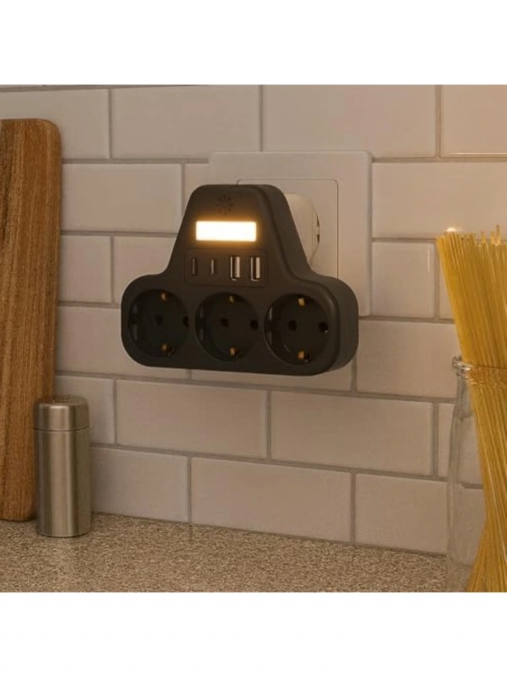3680W akım korumalı 3'lü priz adaptörü, 2 USB ve 2 Type-C girişi ile donatılmıştır. Ani ısı artışlarına karşı otomatik kapanma özelliği sayesinde güvenli bir kullanım sağlar. Şık tasarımı ile her ortama estetik bir görünüm katar.